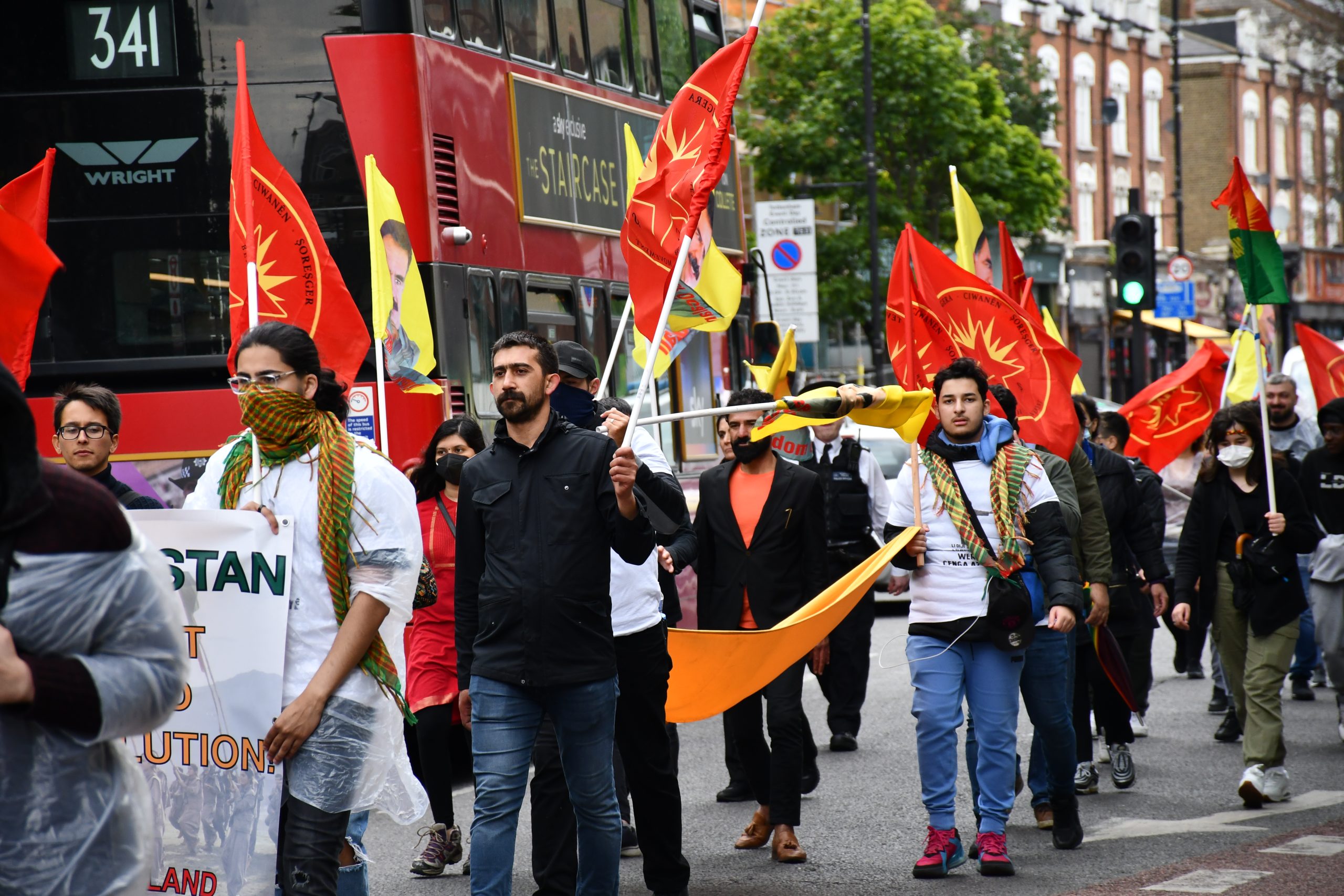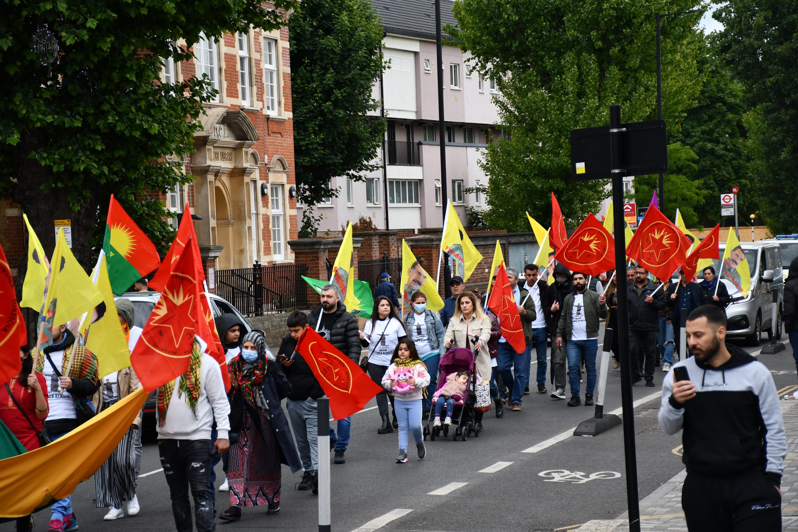 LONDRA – Gençlik hareketleri “Tevgera Ciwanên Şoreşger” (TCŞ) ve “Jinên Ciwan ên Têkoşer” (TekoJIN) tarafından “işgal ve ihanete” karşı düzenlenen uzun yürüyüş, sabah erken saatlerinde Herford Road caddesinde başlarken, akşam saatlerinde Demokratik Kürt Toplum Merkezi’nde sona erdi.