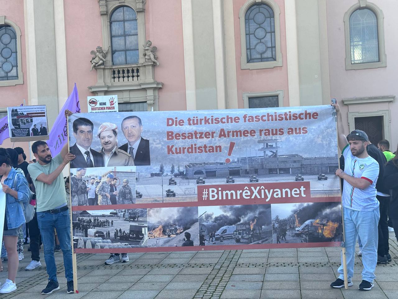 LUDWISBURG – Türk devletinin Güney Kurdistan’a yönelik işgal saldırılarına tepkiler sürüyor. KDP ve AKP’nin kirli ittifakları sonucu Güney Kurdistan’a yapılan askeri sevkiyat ve saldırılar, TCŞ ve TekoJIN üyesi gençler öncülüğünde bir araya gelen Kurdistan halkı tarafından protesto edildi.