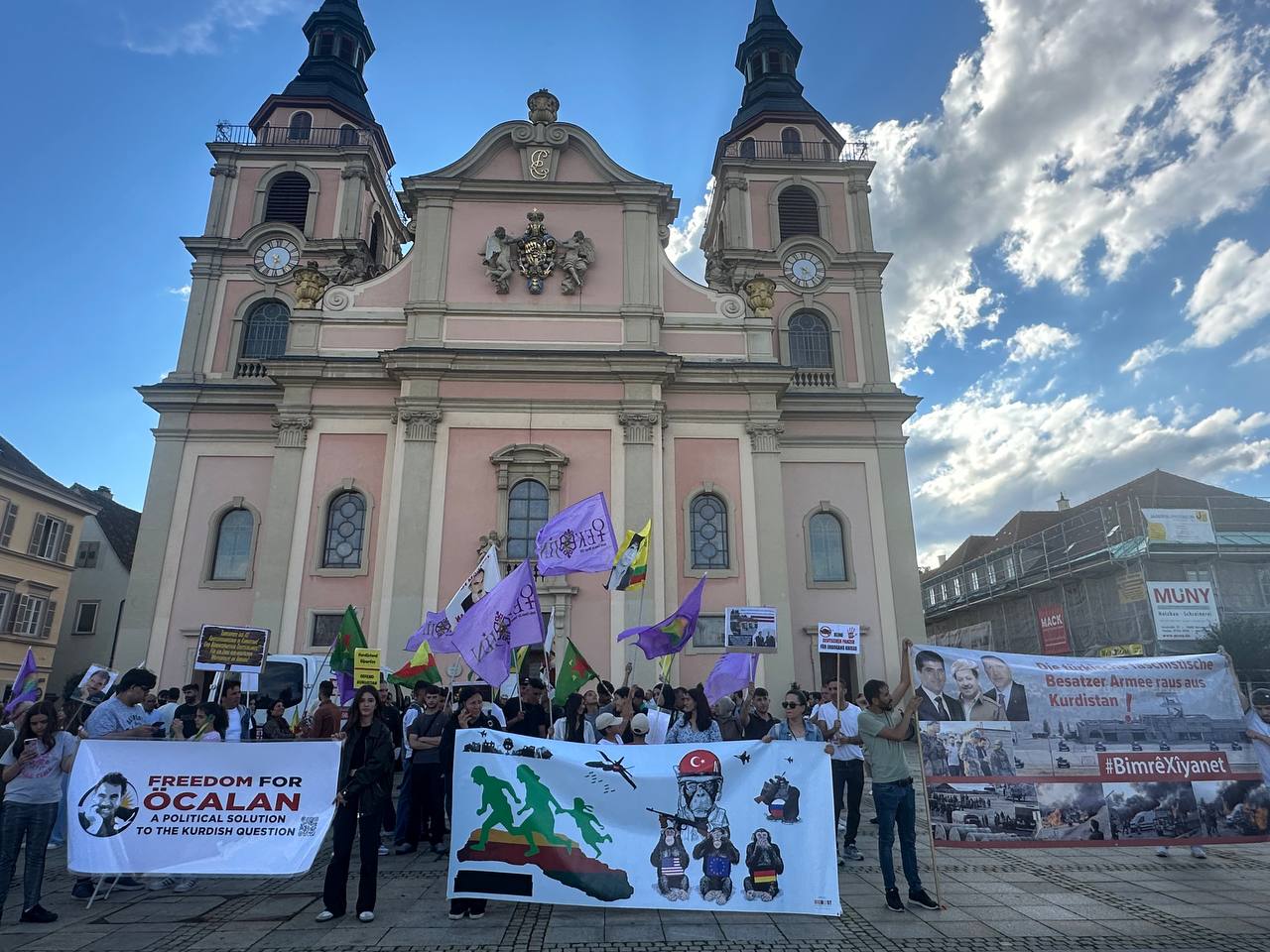 Stuttgart Demokratik Kürt Toplum Merkezi’nin çağrısı üzerine Ludwigsburg Tren Garında bir araya gelen kitle, gençlerin öncülüğü ile Marplatz’a kadar yürüyerek ihanet ve işgal saldırılarına karşı tepki gösterdi.