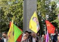 Sık sık “Katil Erdoğan”, “Bimre Xiyanet”, “Bijî Berxwedana Gerîla”, “Bijî Berxwedana Rojava” ve “Bijî Serok APO” sloganları atıldı.