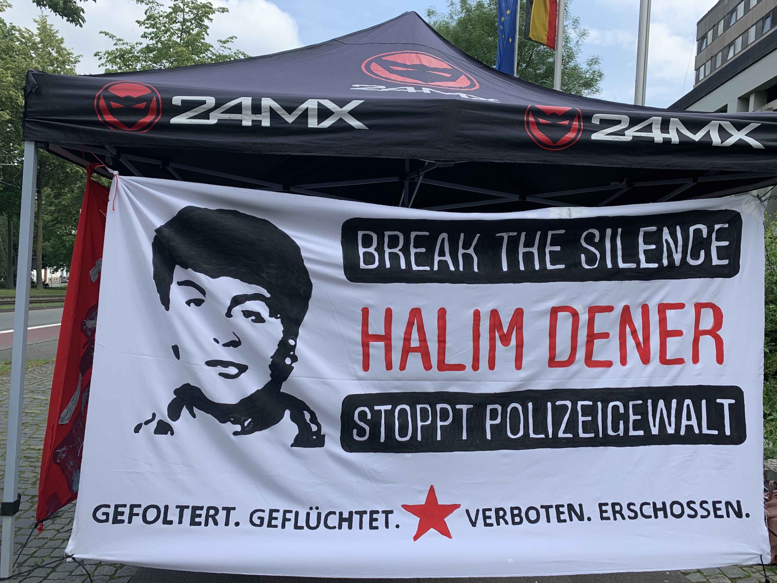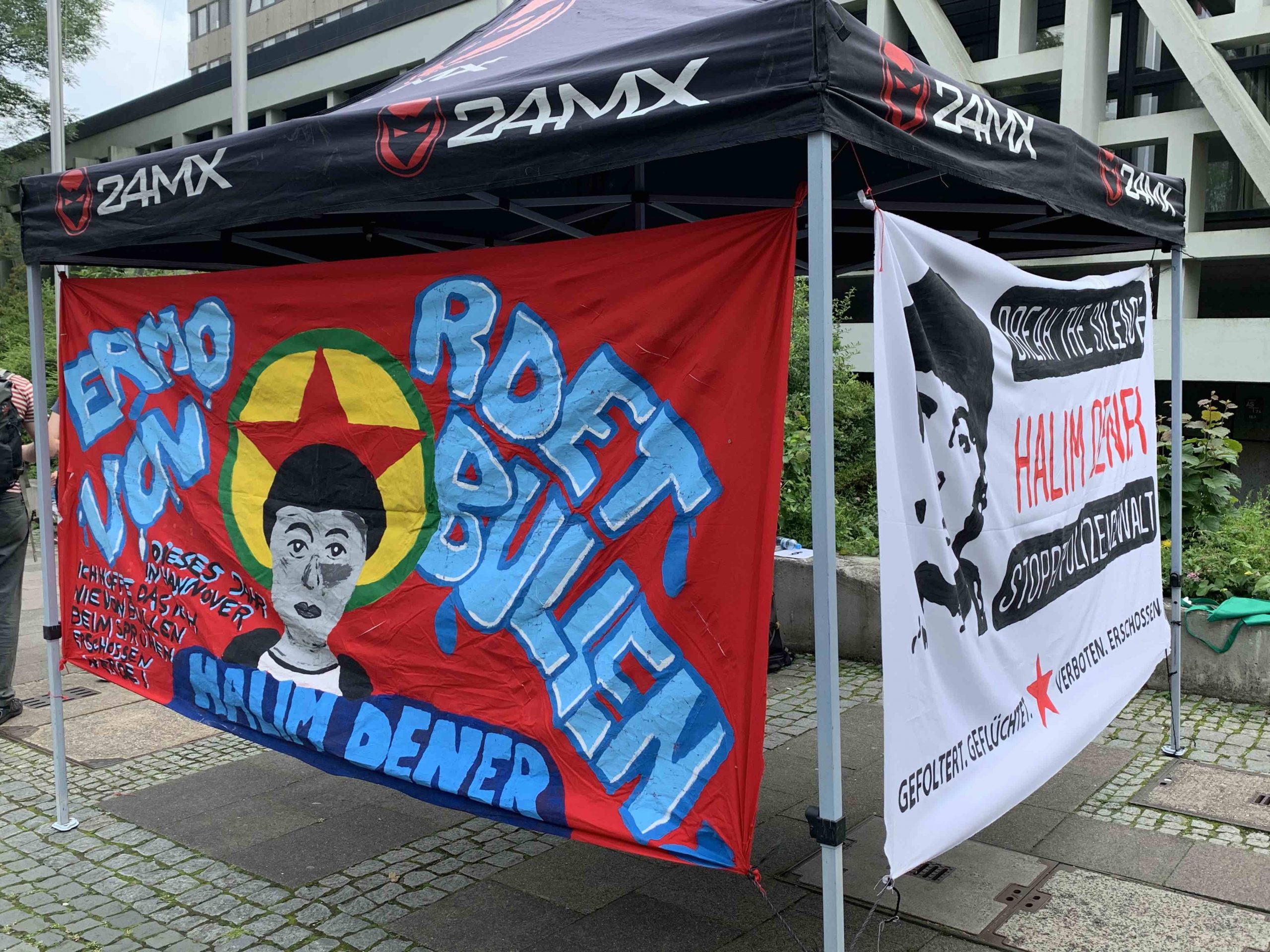 Duruşma salonunda bazı aktivistler yer alırken, diğer eylemciler ise mahkeme önünde açtıkları çadırda yoldan geçen insanlara, Halim Dener’in katledilmesi, dava süreci ve Almanya’da yaşayan Kürt halkının maruz kaldığı polis baskısı anlatıldı.