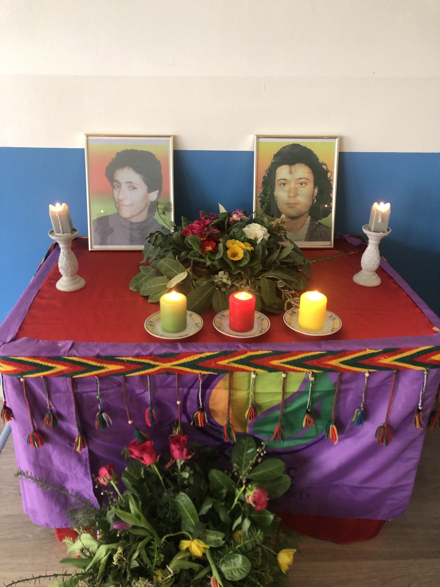 Eylemlerini gerçekleştirdikleri yerde bir araya gelen Kürdistanlılar, Kürdistan devrim şehitleri anısına bir dakikalık saygı duruşu ile anmaya başladı.