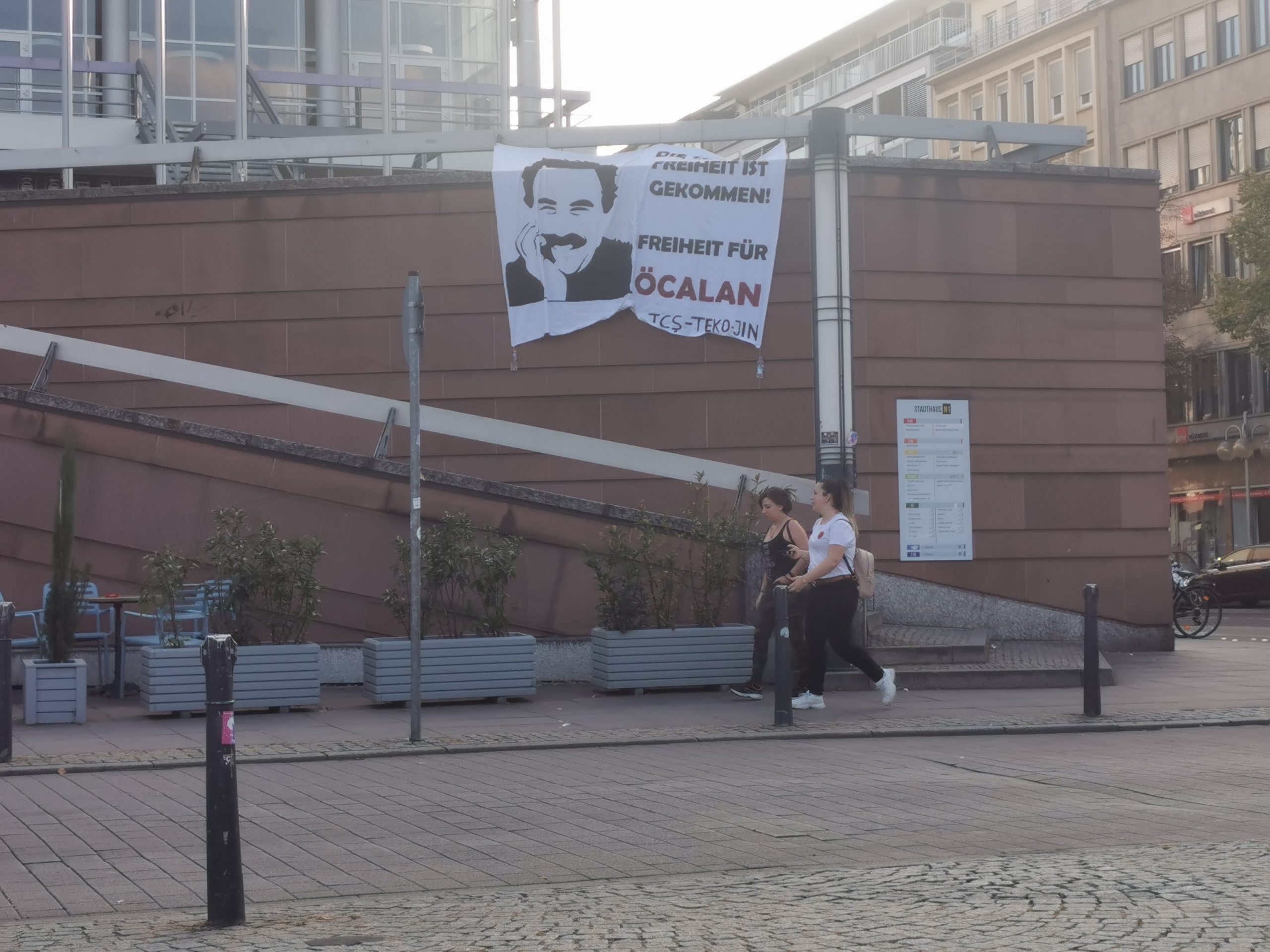 Almanya’nın Mannheim kentinde TCŞ ve TEKO-JIN aktivisti gençler, kalabalık ve faşistlerin de yoğun yaşadığı Paradeplatz meydanına pankart astı. Pankartta Önder Öcalan’ın silueti ve Almanca, “Zamanı Geldi; Öcalan’a Özgürlük” yazarken, gençler, KCK tarafından ilan edilen “Tecride, Faşizme ve İşgale Son: Özgürlüğü Sağlama Zamanı” hamlesine kesintisiz bir şekilde katılacaklarını belirttiler.