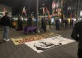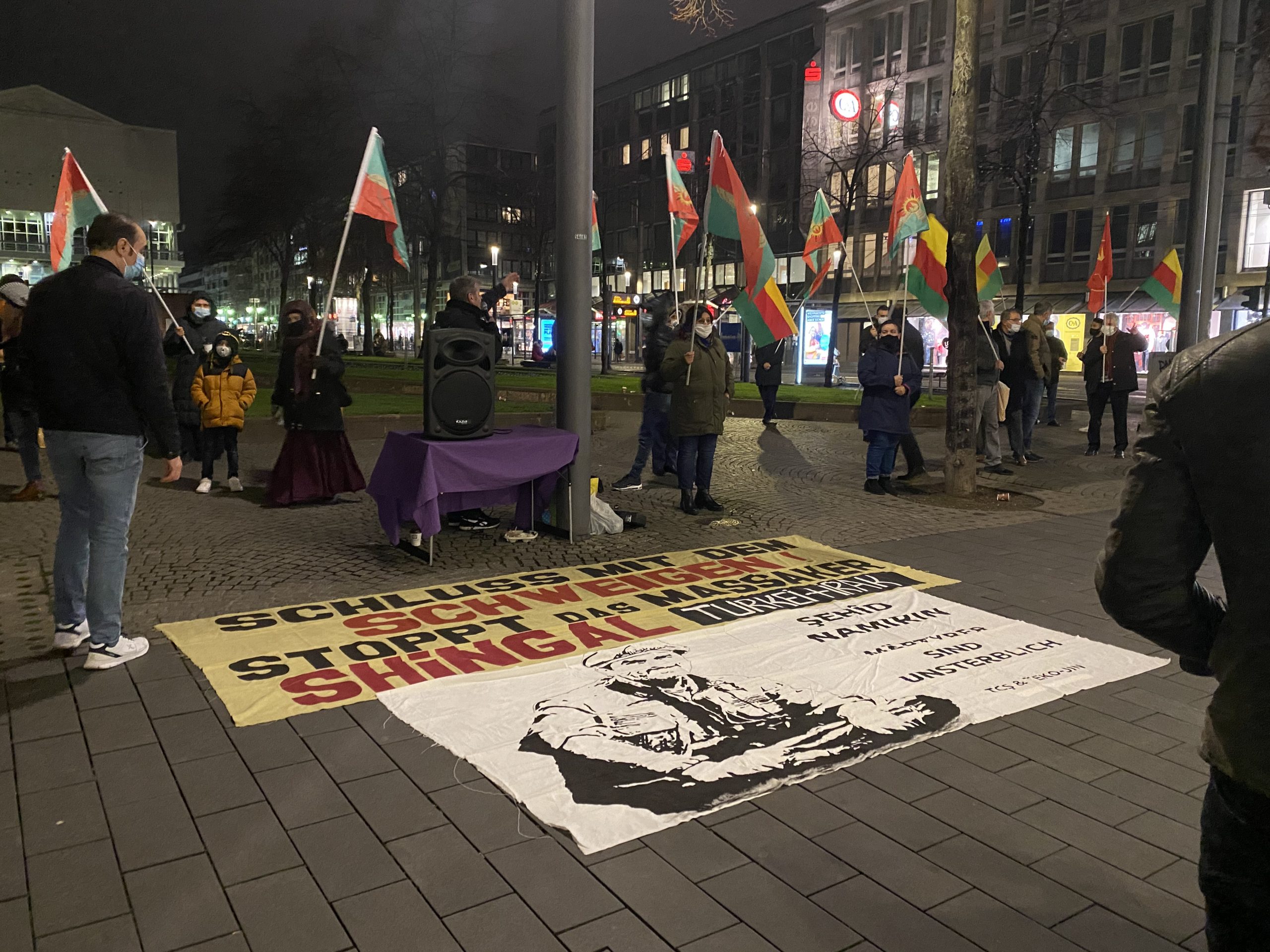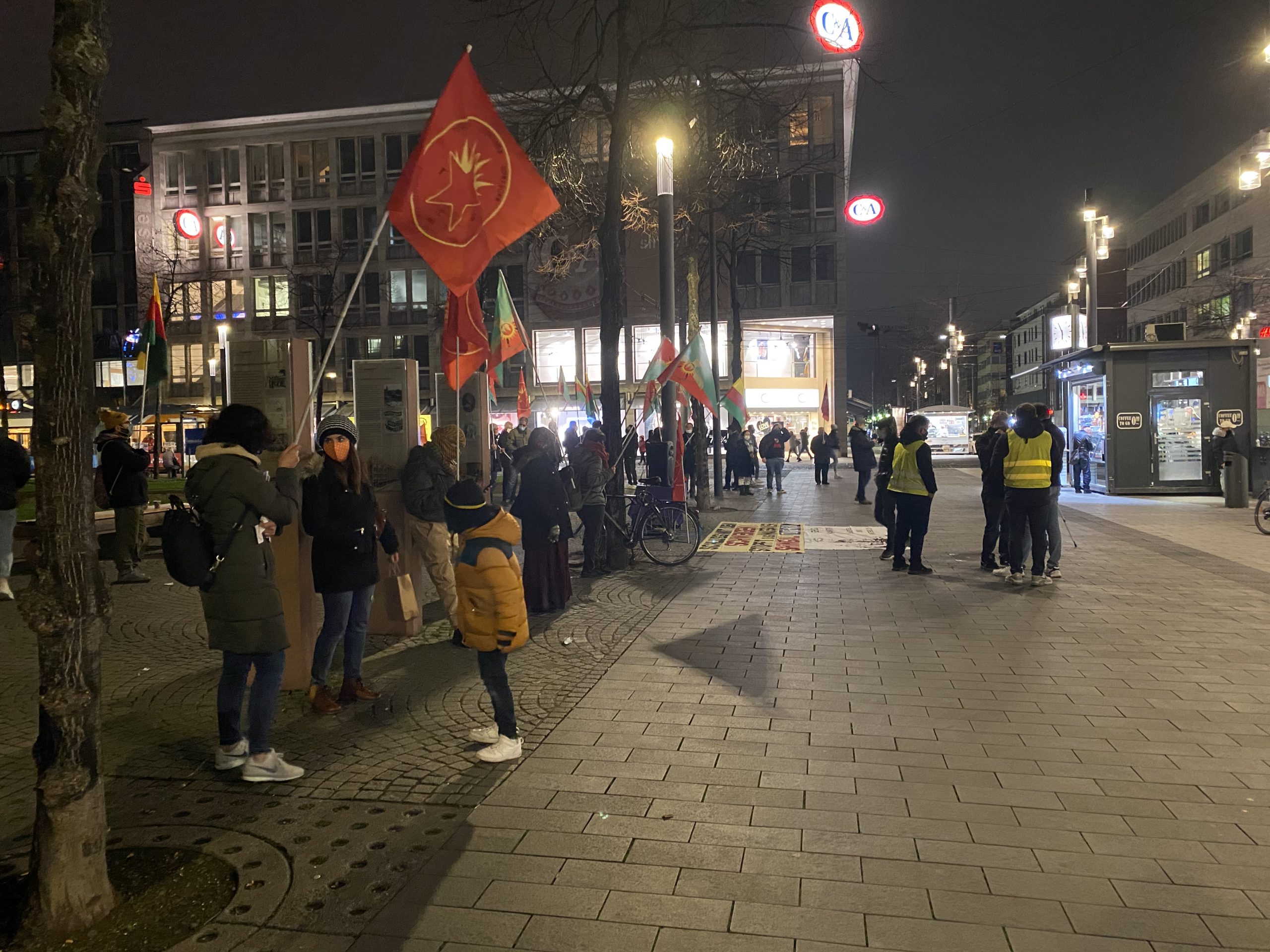 Berliner Platz meydanında toplanan Kürdistanlılar, devrim şehitleri anısına bir dakikalık saygı duruşu ile eyleme başladı.