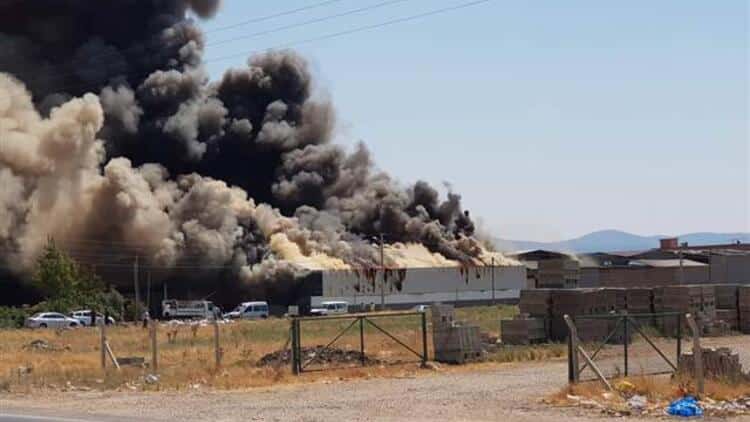 Tekstil fabrikasında çıkan yangın sonucunda fabrikanın deposu kullanılamaz hale geldi.
