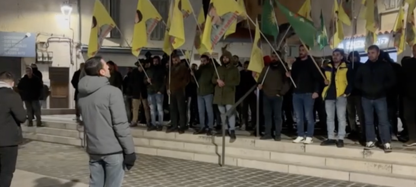 Marignane meydanında yürüyüşe başlayan Kürt halkı Marignane belediye kavşağına kadar yürüdü ve burada bir basın açıklaması gerçekleştirdi.