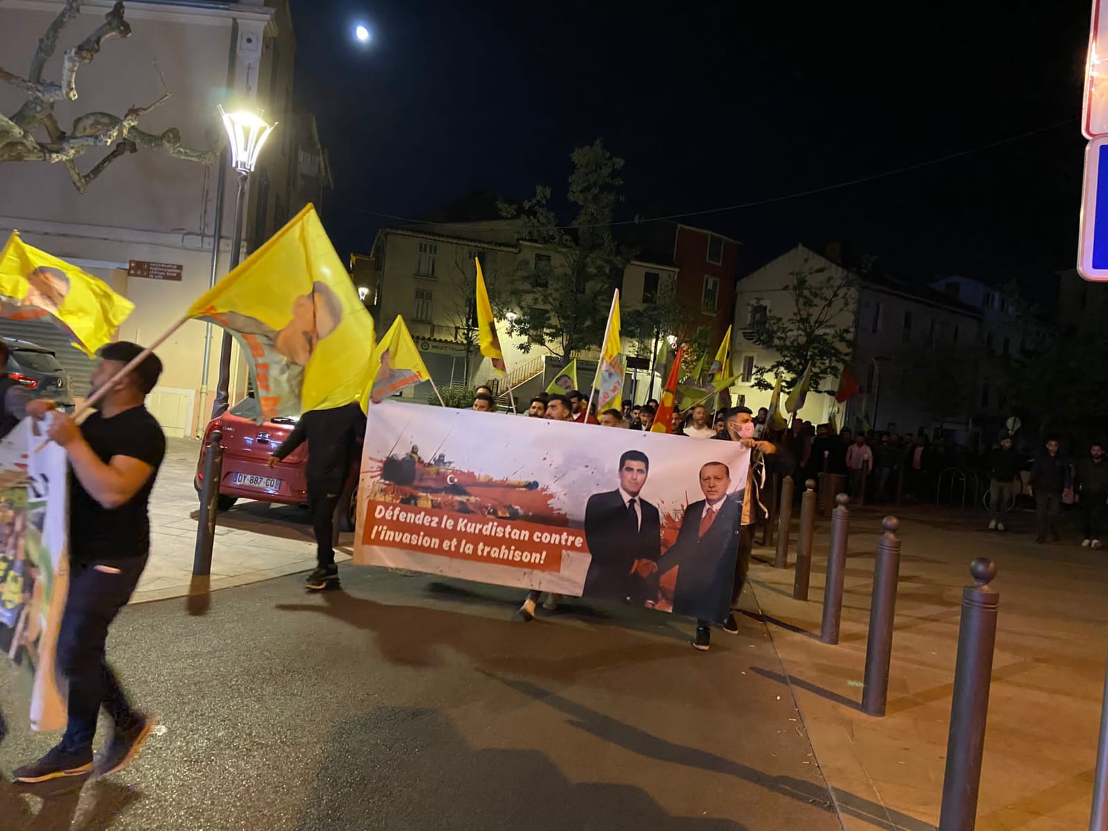 TCŞ aktivistleri, Fransa'nın güneyindeki Marignane’de faşist Türk devletinin saldırılarını bir yürüyüşle protesto etti.