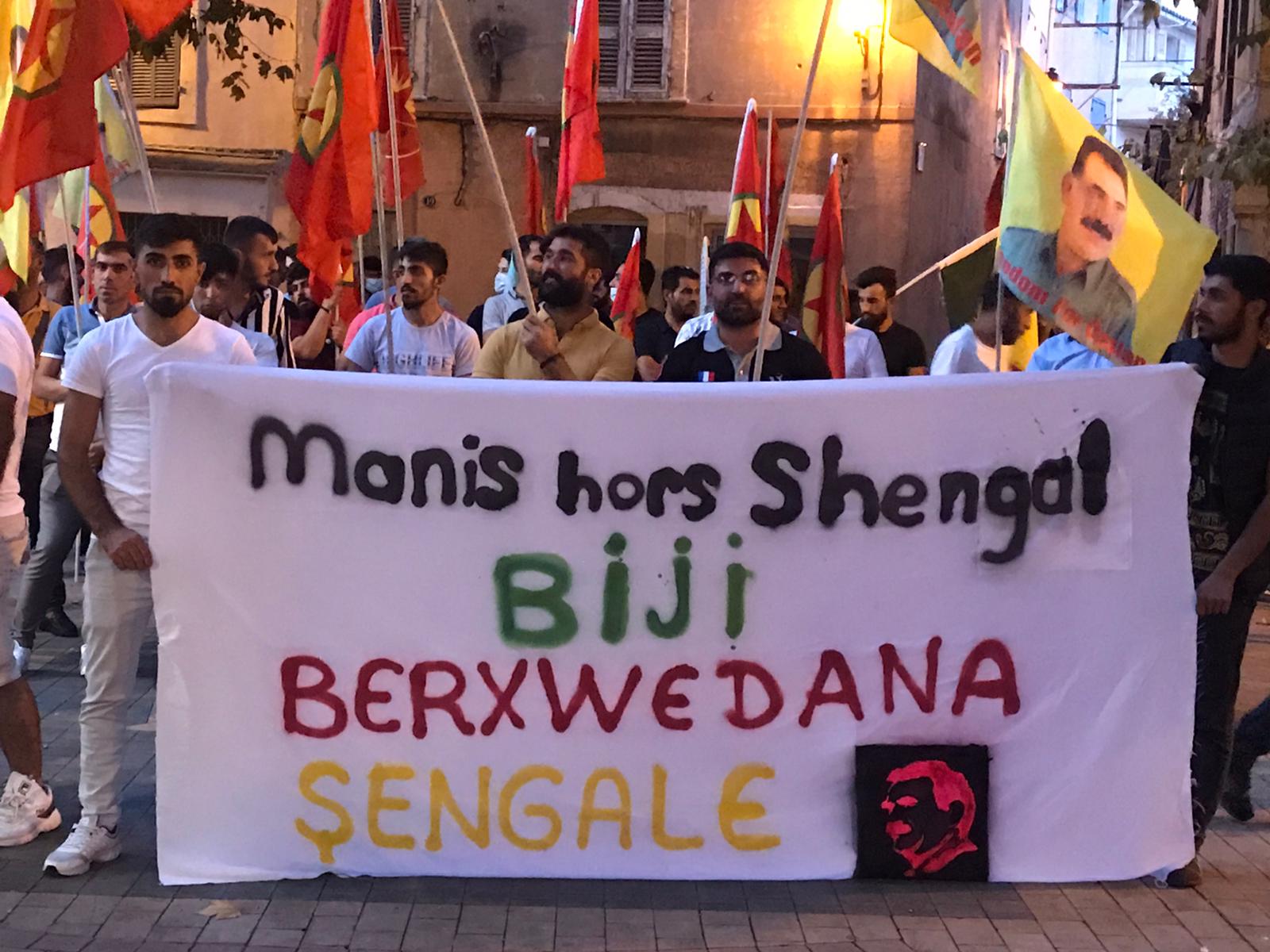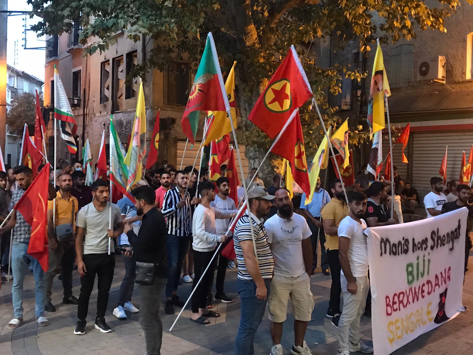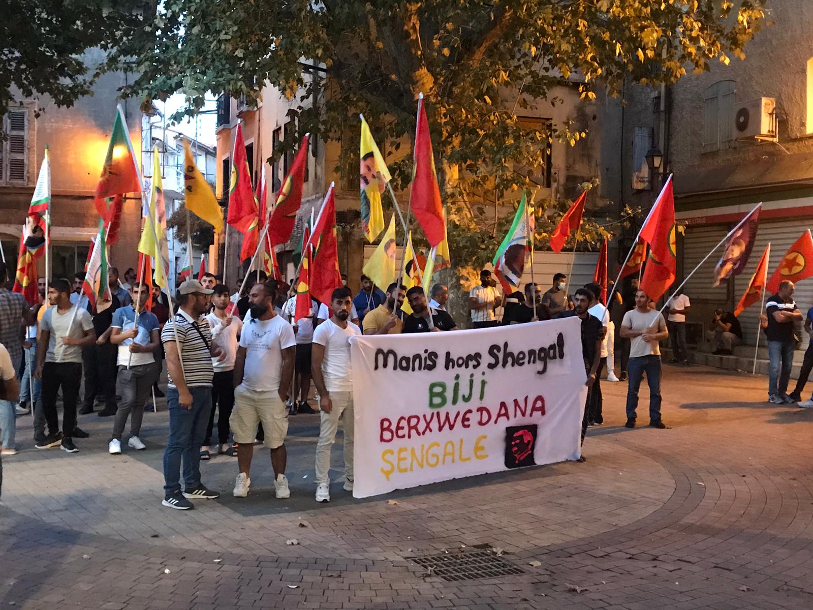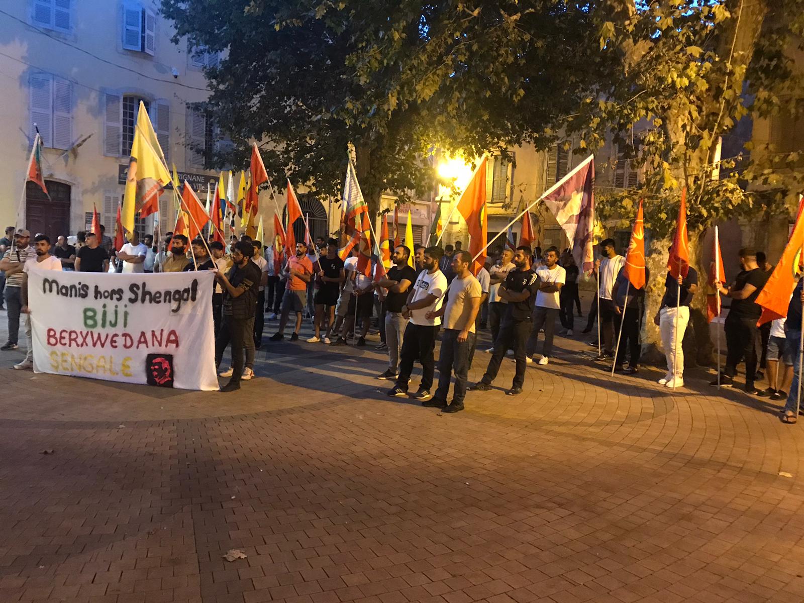 MARİGNANE – Akşam saatlerinde bir araya gelen Kürdistanlılar, Kürdistan Devrim Şehitleri anısına bir dakikalık saygı duruşunun ardından eylemlerine başladılar.