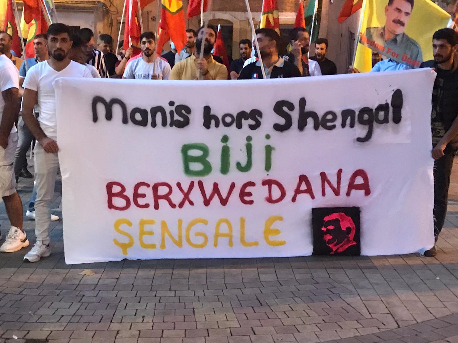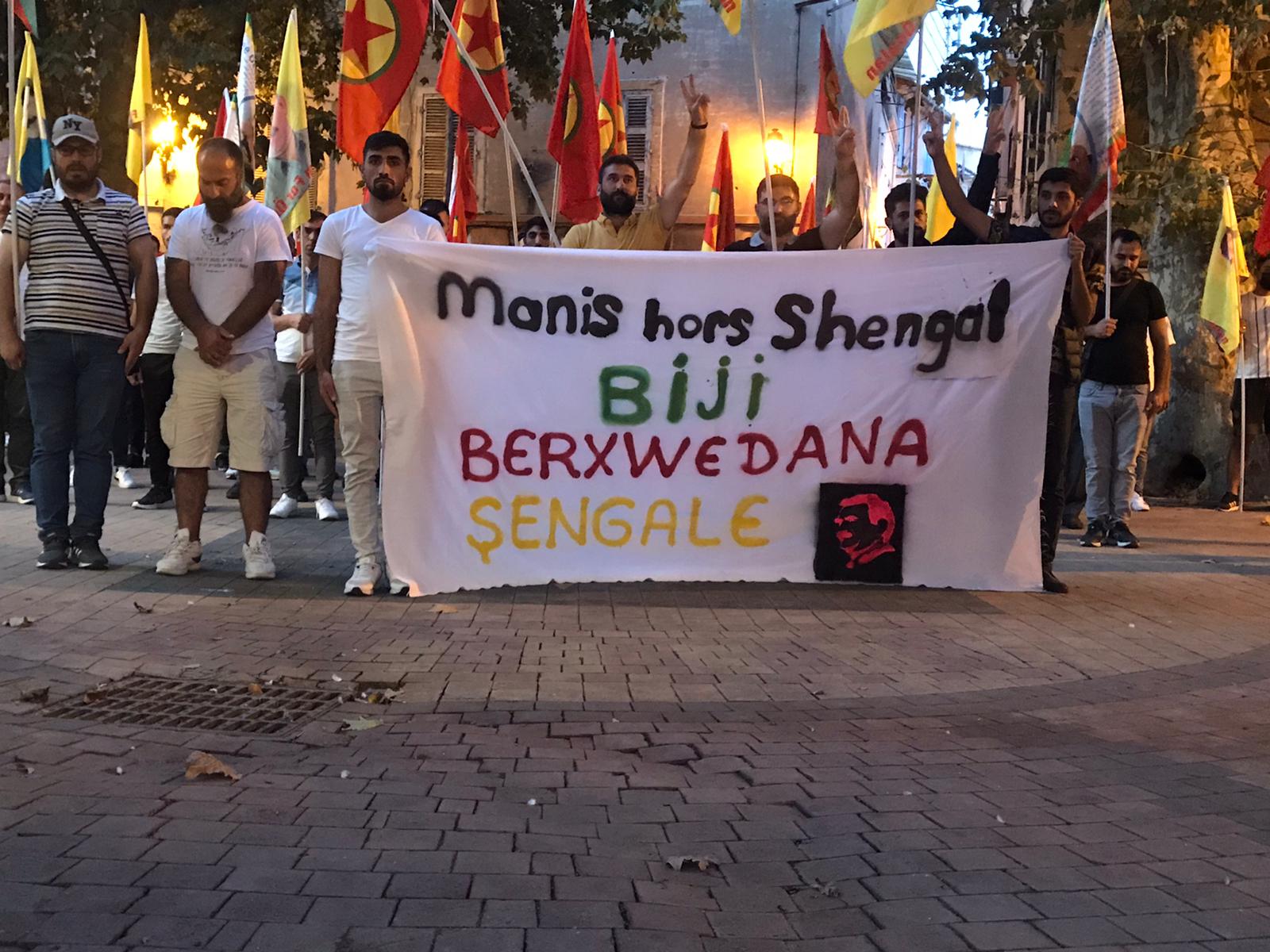 Halkın yoğun katıldığı eylemde sık sık “Bijî Serok APO”, “Libere Öcalan”, “Terorist Erdogan” ve “A bas le régime fasciste en Turquie (Kahrolsun Faşist Türk Rejimi)” sloganları atıldı. Eylem faşist TC’nin saldırılarına ilişkin yapılan açıklama ile devam etti.