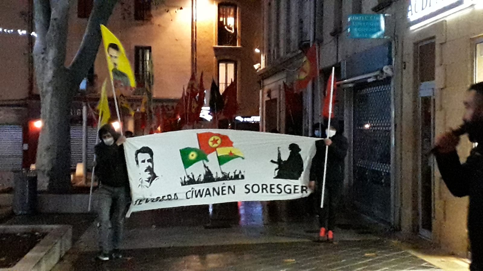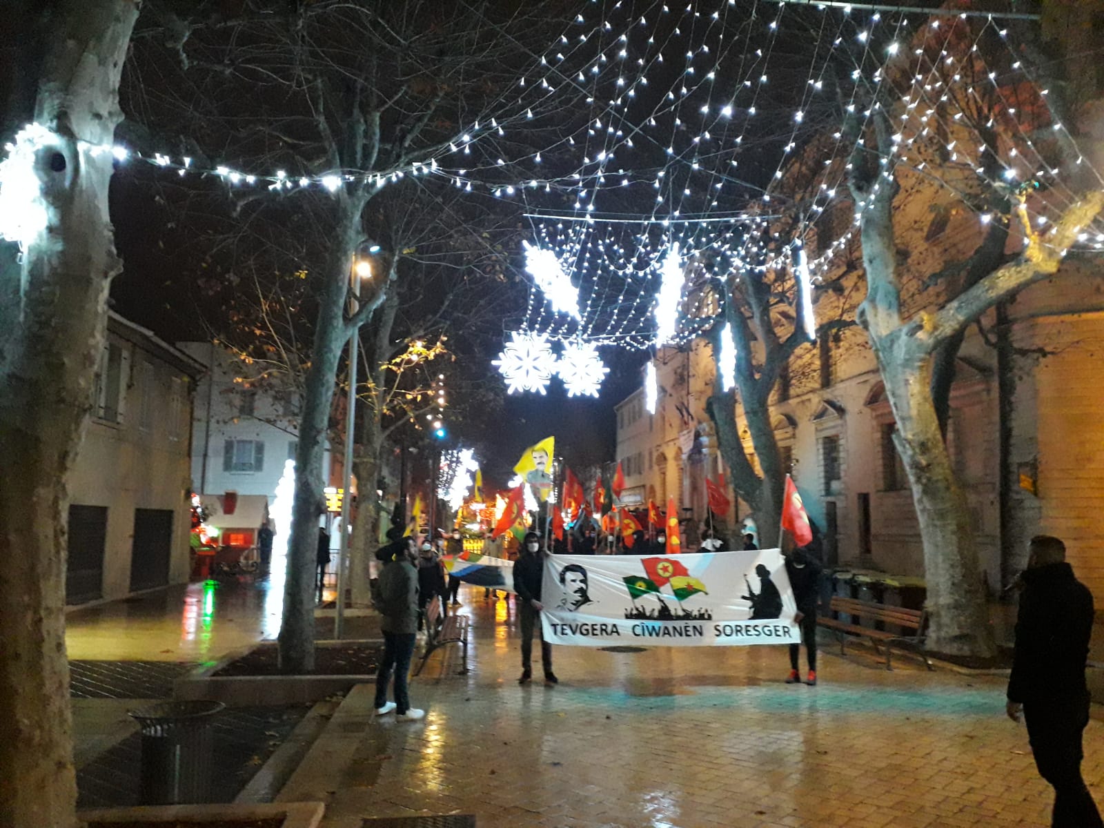 Marignane belediyesinin önünde miting ile devam eden eylemde, Kürdistan devrim şehitleri için bir dakikalık saygı duruşu ardından TCŞ ve DTM adına konuşmalar yapıldı.