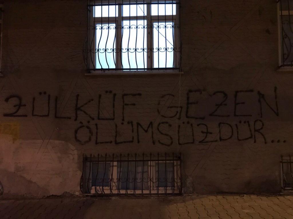 İSTANBUL/KOCAELİ – İstanbul’un Esenyurt ilçesi ve Kocaeli’nin Gebze ilçesinde gençlik alanlara çıkarak, Halklar Önderi Abdullah Öcalan üzerindeki ağırlaştırılmış tecridi kırmak amacıyla fedai eylem gerçekleştiren Zülküf Gezen için yazılama eylemi gerçekleştirdi. Gençler, birçok yerde “Zülküf Gezen Ölümsüzdür” yazılamalarını yaptı.