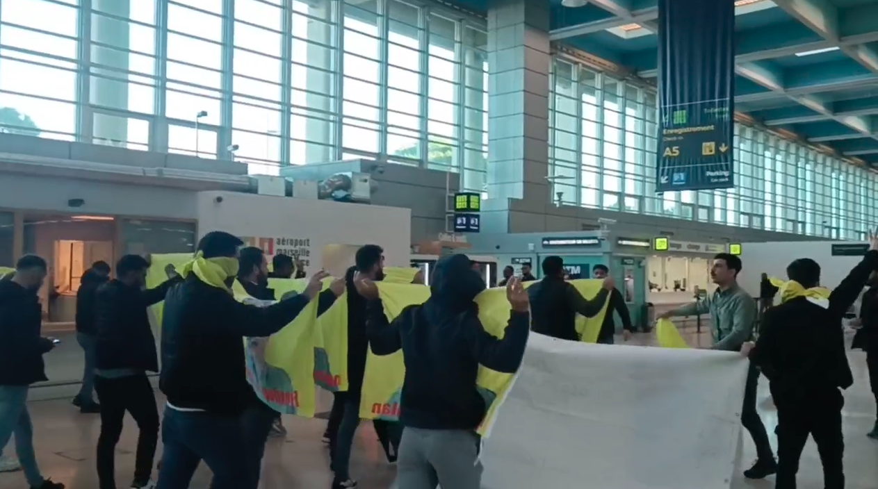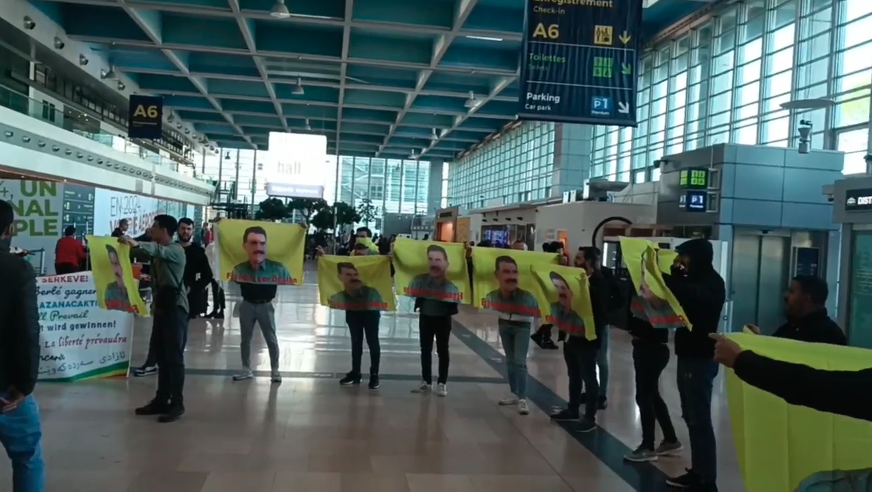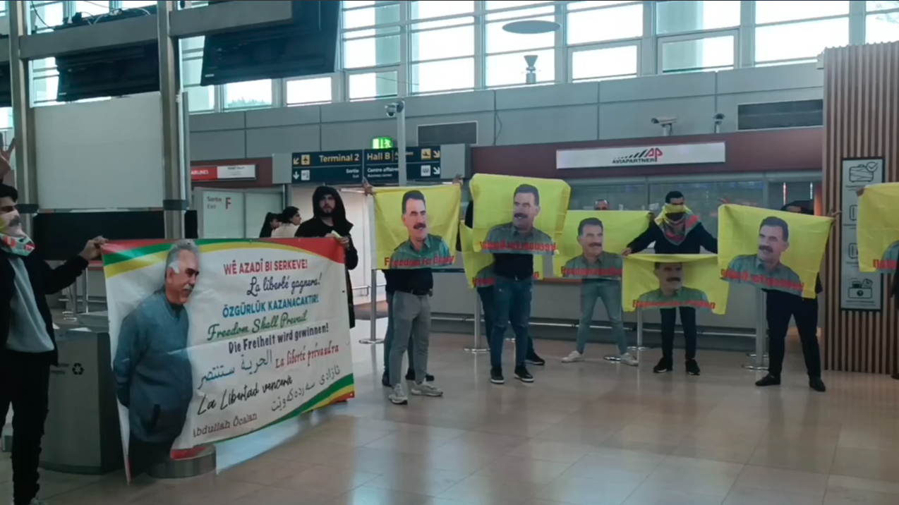MARSİLYA – Marseille Provence Havaalanına birçok dilde “Özgürlük Kazanacaktır” yazılı pankart, Önder APO flamaları ve Önder APO’ya yönelik sloganlarla giren gençler yapılan tüm engellemelere rağmen eylemlerini sürdürdü.