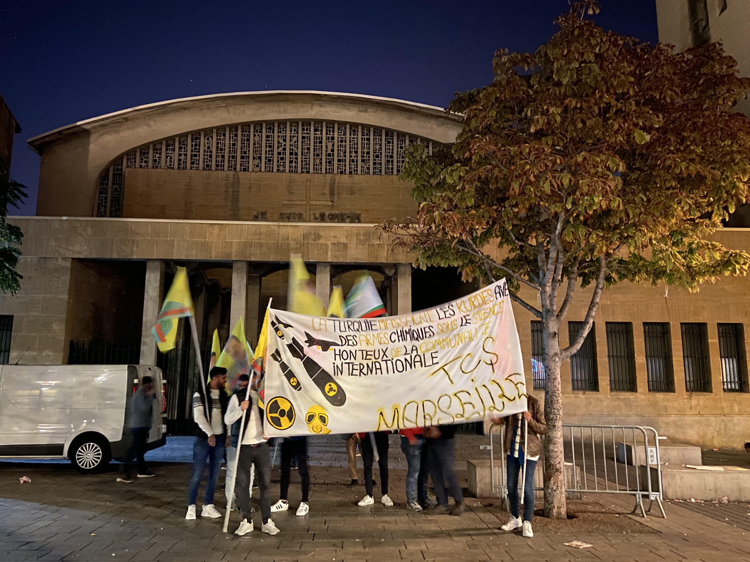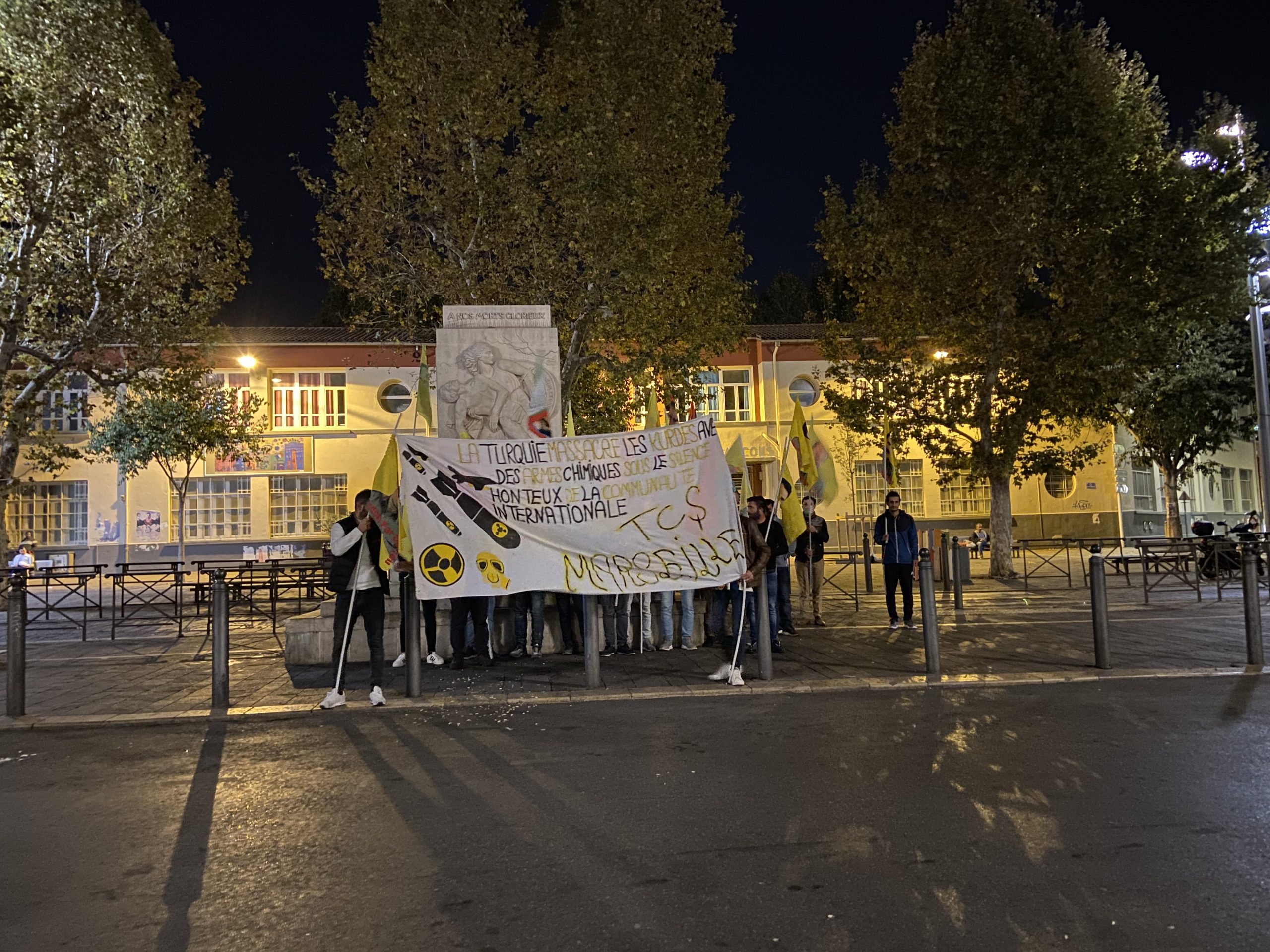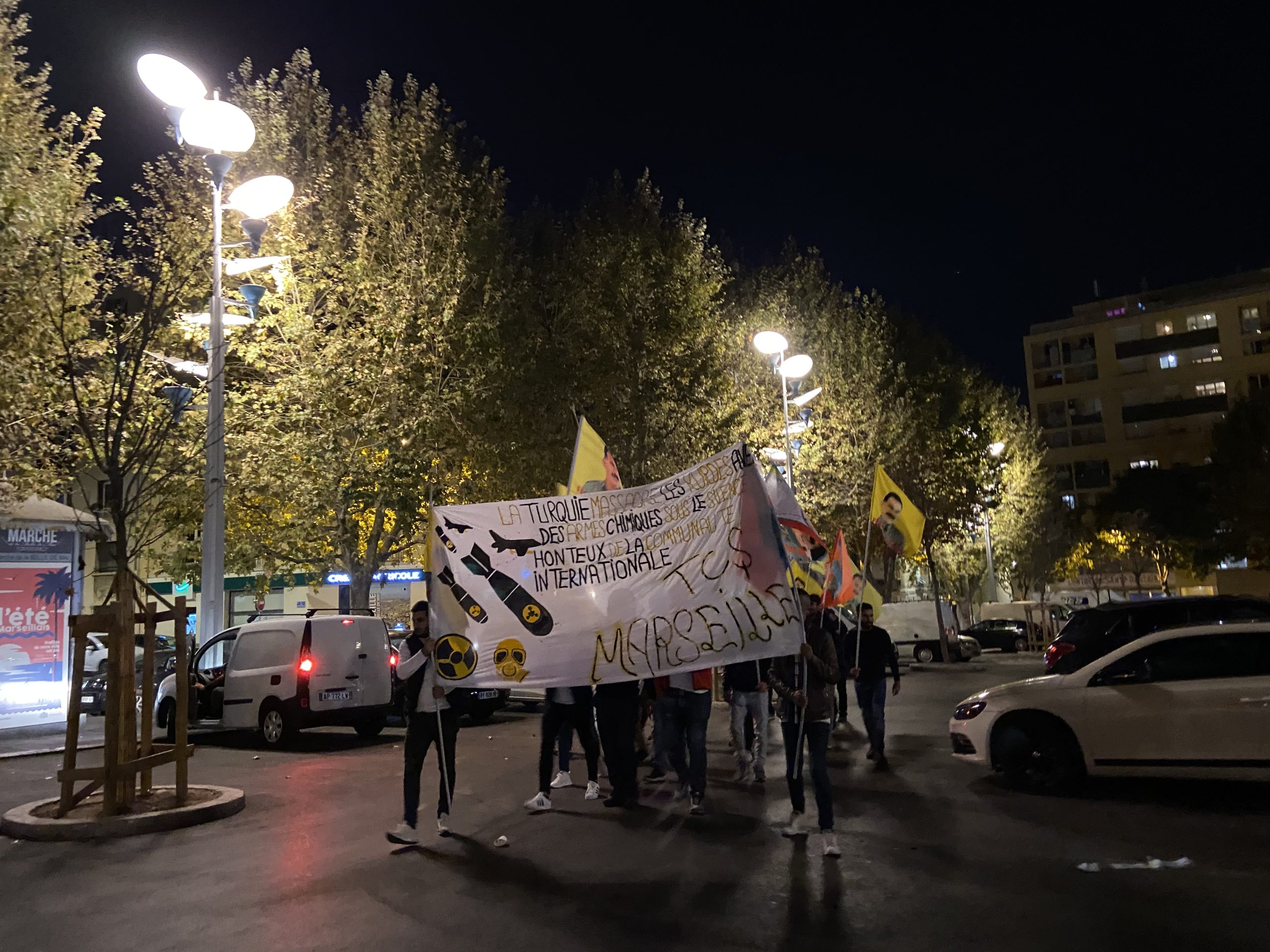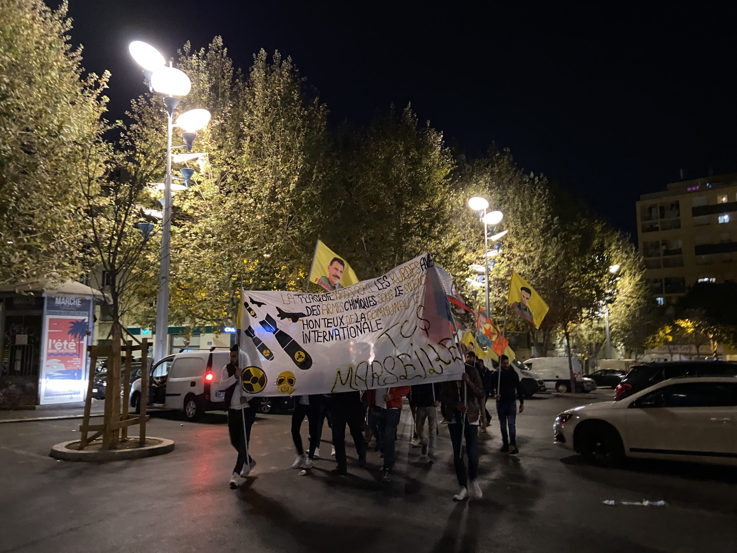 MARSİLYA – Akşam saat 19:30’da Marsilya kentinin Belle de mai meydanında TCŞ (Tevgera Ciwanên Şoreşger) aktivistlerinin çağrısıyla bir araya gelen gençler yürüyüşlerine buradan başladılar. Yürüyüş Önder Öcalan’ın fiziki özgürlüğünün sağlanması ve faşist TC zihniyetinin Kürdistan’da kahramanca savaşan gerillaya karşı kimyasal silah kullanımını protesto etmek için gerçekleştirildi.