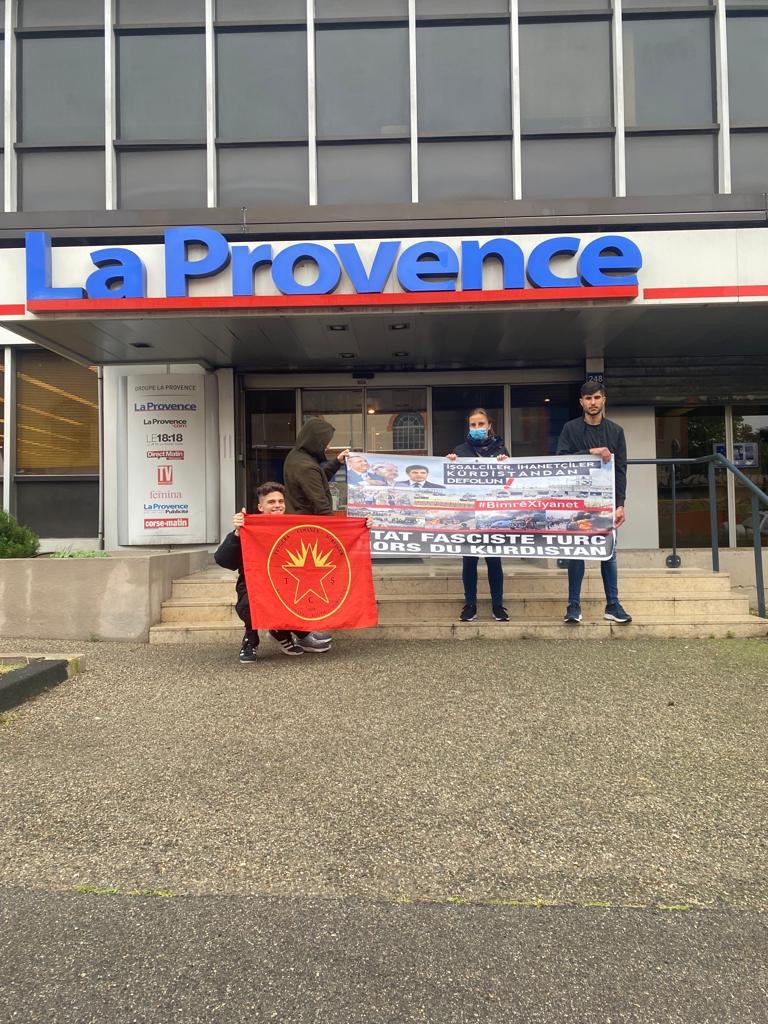 MARSİLYA – TCŞ (Tevgera Ciwanên Şoreşger) ve TekoJIN (Jinên Ciwan ên Têkoşer) aktivisti gençler, Fransa’nın Marsilya kentinde bulunan La Provence binasına Medya Savunma Alanları’na yönelik faşist TC’nin saldırılarının tüm kamuoyuna duyurulması için gazete yetkililerine dosya sundular.