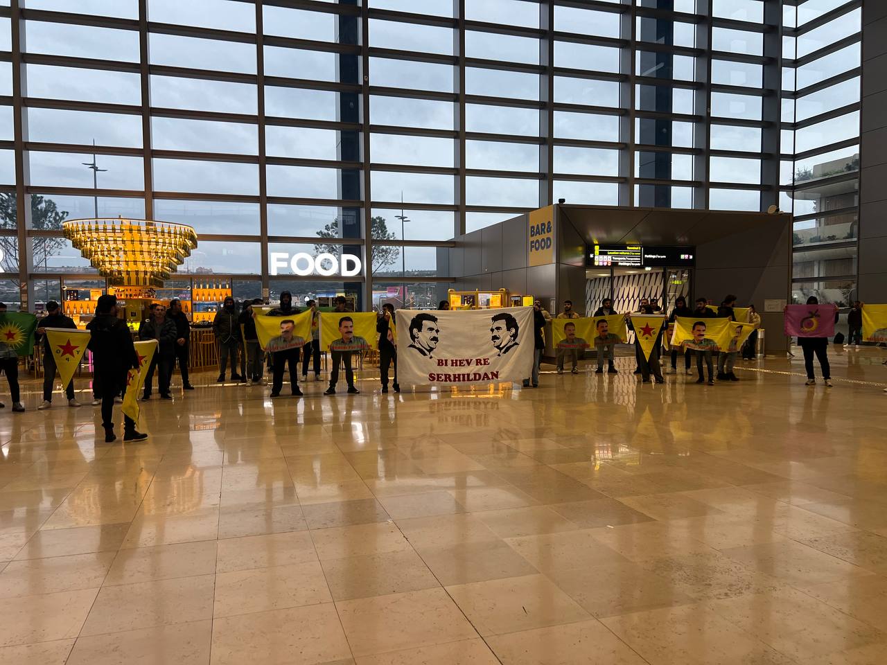MARSİLYA– Fransa’nın Marsilya kentinde Tevgera Ciwanên Şoreşger (TCŞ) üyesi gençler, işgalci çetelerin Rojava’ya yönelik saldırılarına karşı Marignane Havalimanı’nda bir sivil itaatsizlik eylemi gerçekleştirdi. Saat 17.00’de havalimanına giriş yapan gençler, terminali direniş sloganlarıyla inlettikten sonra eylemi bir buçuk saat boyunca kararlılıkla sürdürdü.