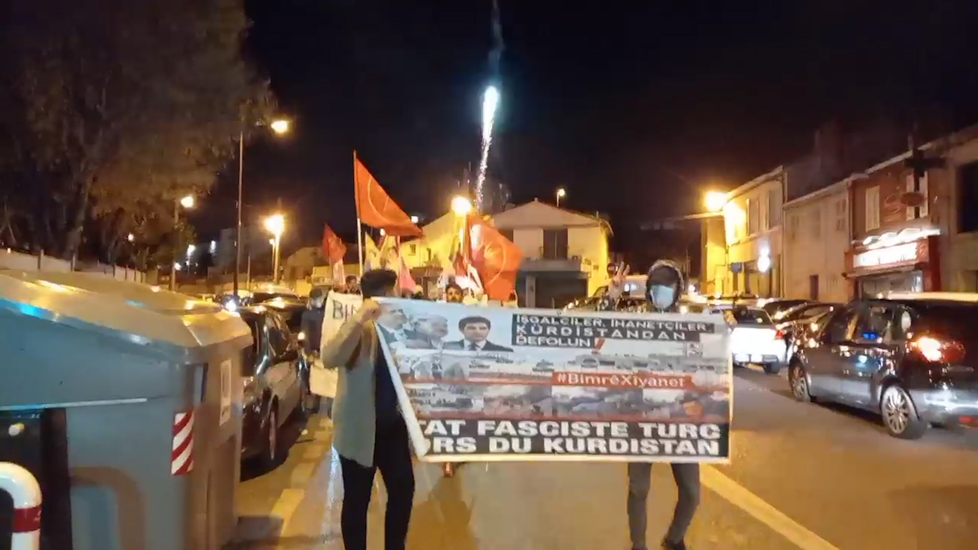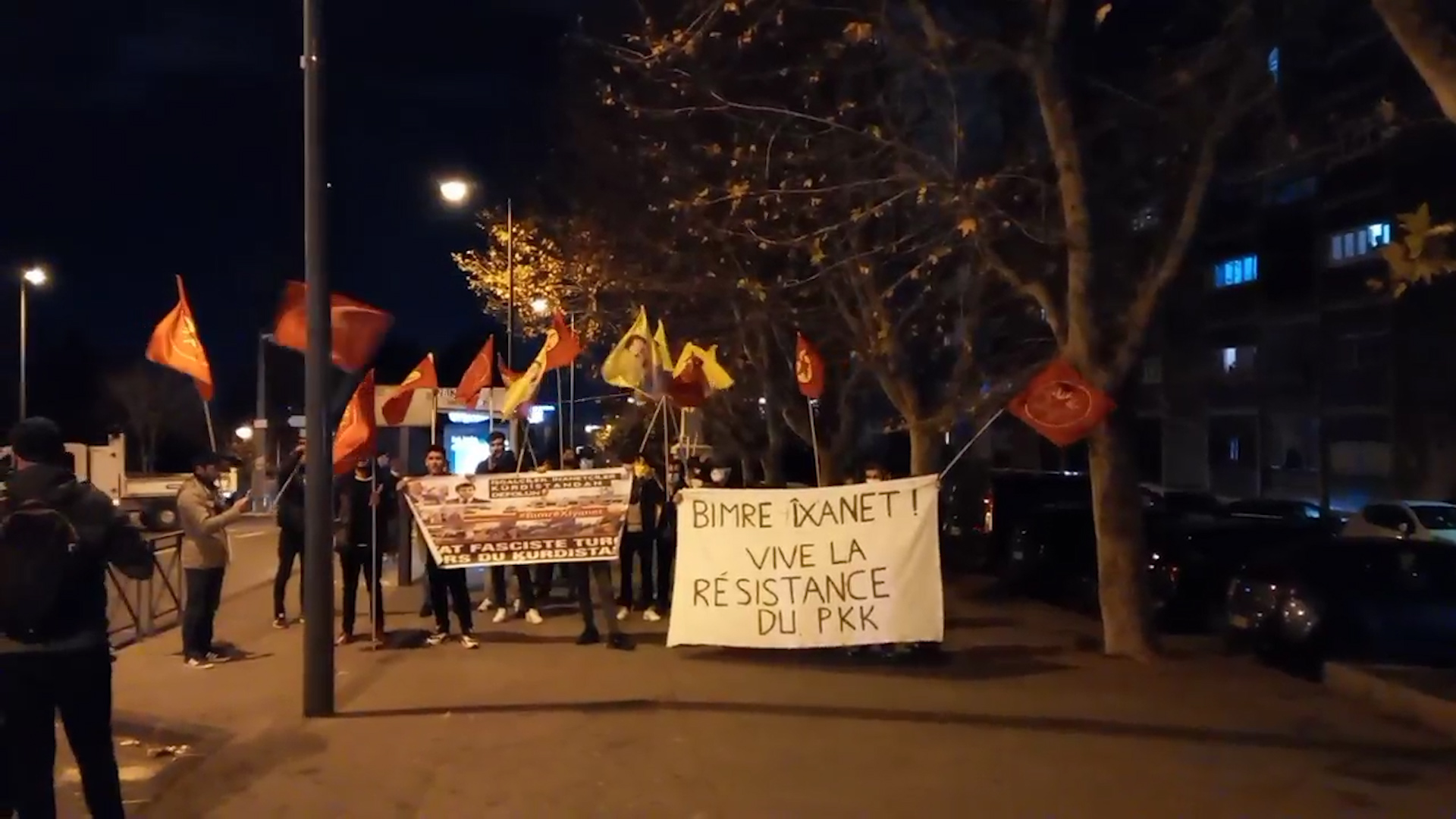 16 Aralık Çarşamba günü saat 18’de bir araya gelen eylemciler, Saint-Joseph meydanına doğru yürüyüşe başladı. Fransızca, “Türk Devleti Kurdistan’dan Defol” ve “Kahrolsun İhanet – Yaşasın PKK’nin Direnişi” yazılı pankartlarını açan gençler, attıkları “Bimre Îxanet”, “Assassin Barzanî (Katil Barzanî)”, “A Bas Le Régime Fasciste En Turquie (Kahrolsun Faşist Türk Rejimi)” sloganları ile KDP-TC işbirliğini protesto etti.