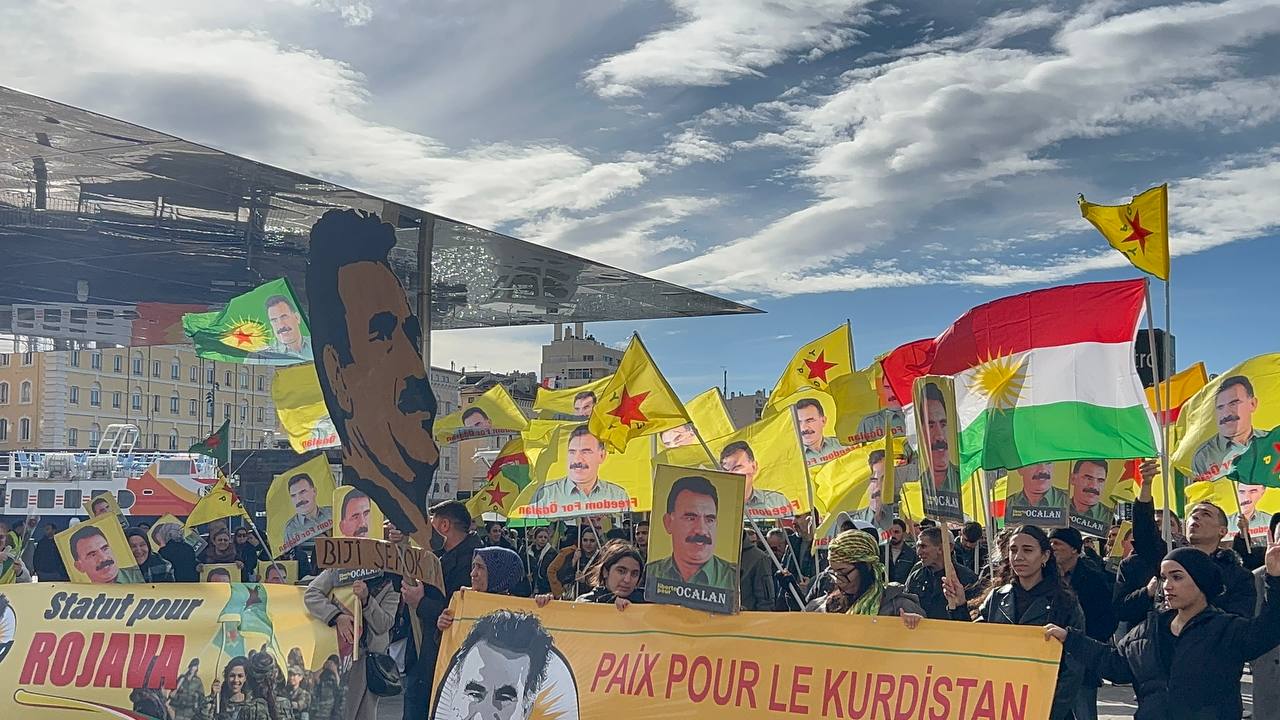 La Canebière Meydanı’nda toplanan kitle, “Önder APO’ya özgürlük, Rojava’ya statü” şiarıyla Vieux-Port’a yürüdü. Kadın ve gençlerin yoğun katılım gösterdiği eylemde “Bijî Serok APO”, “Bijî Berxwedana Rojava”, “Bê Serok jiyan nabe”, “Liberté pour Öcalan” ve “Jin, Jiyan, Azadî” sloganları yükseldi.
