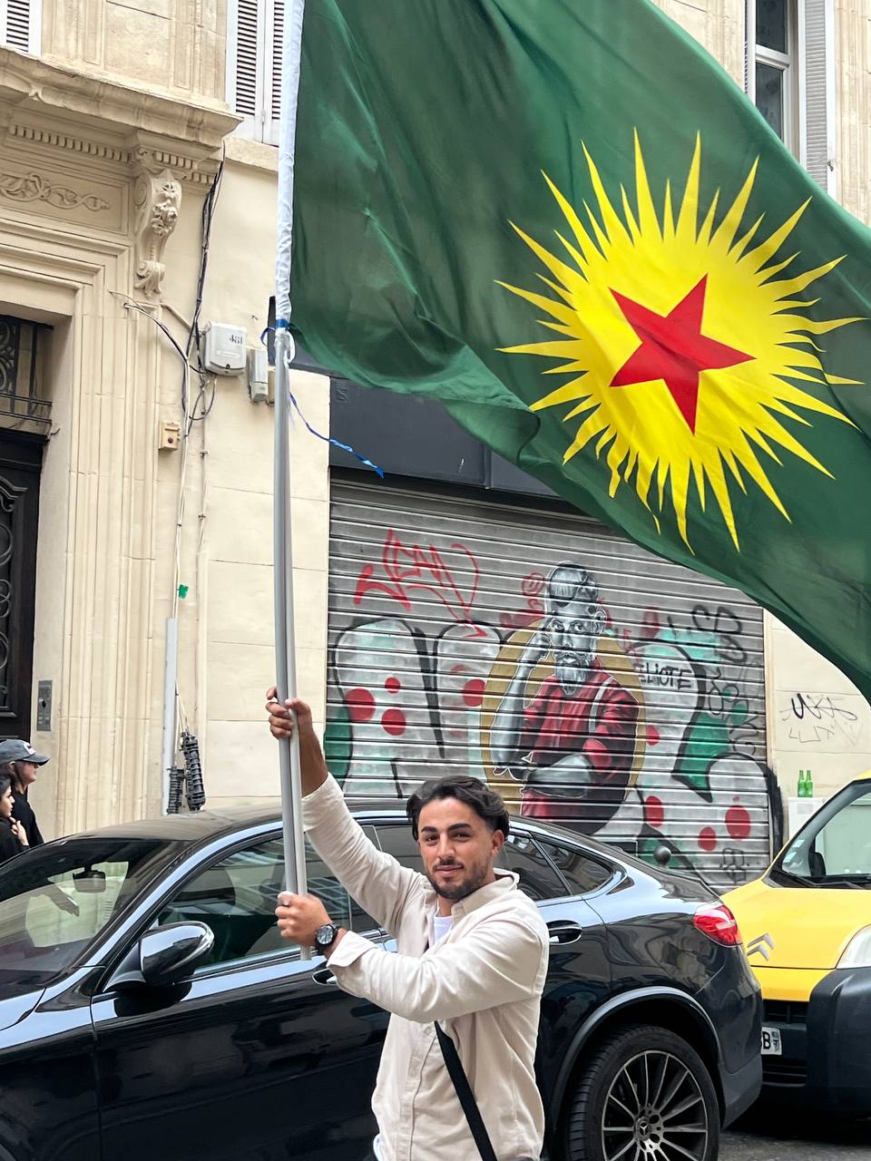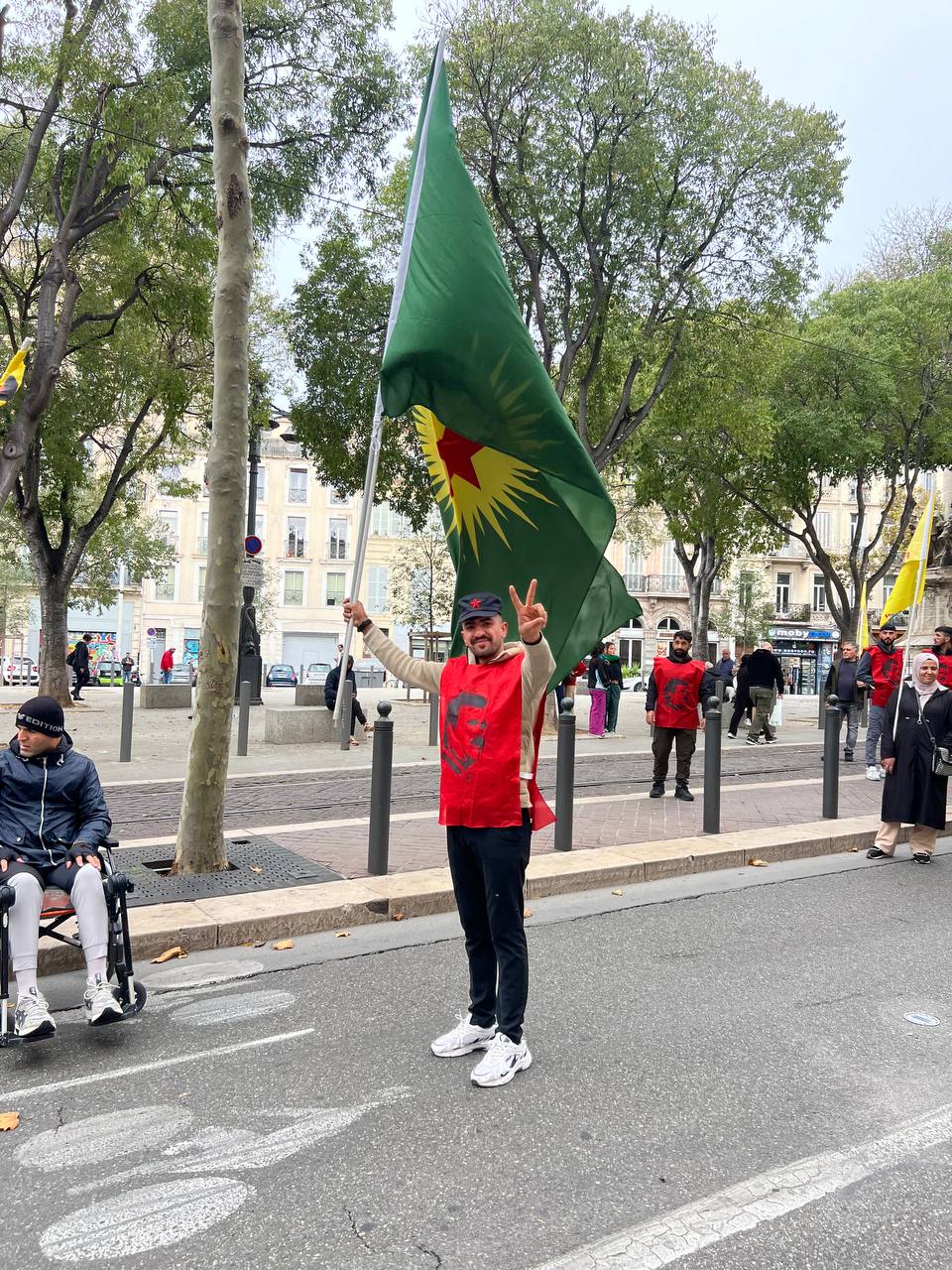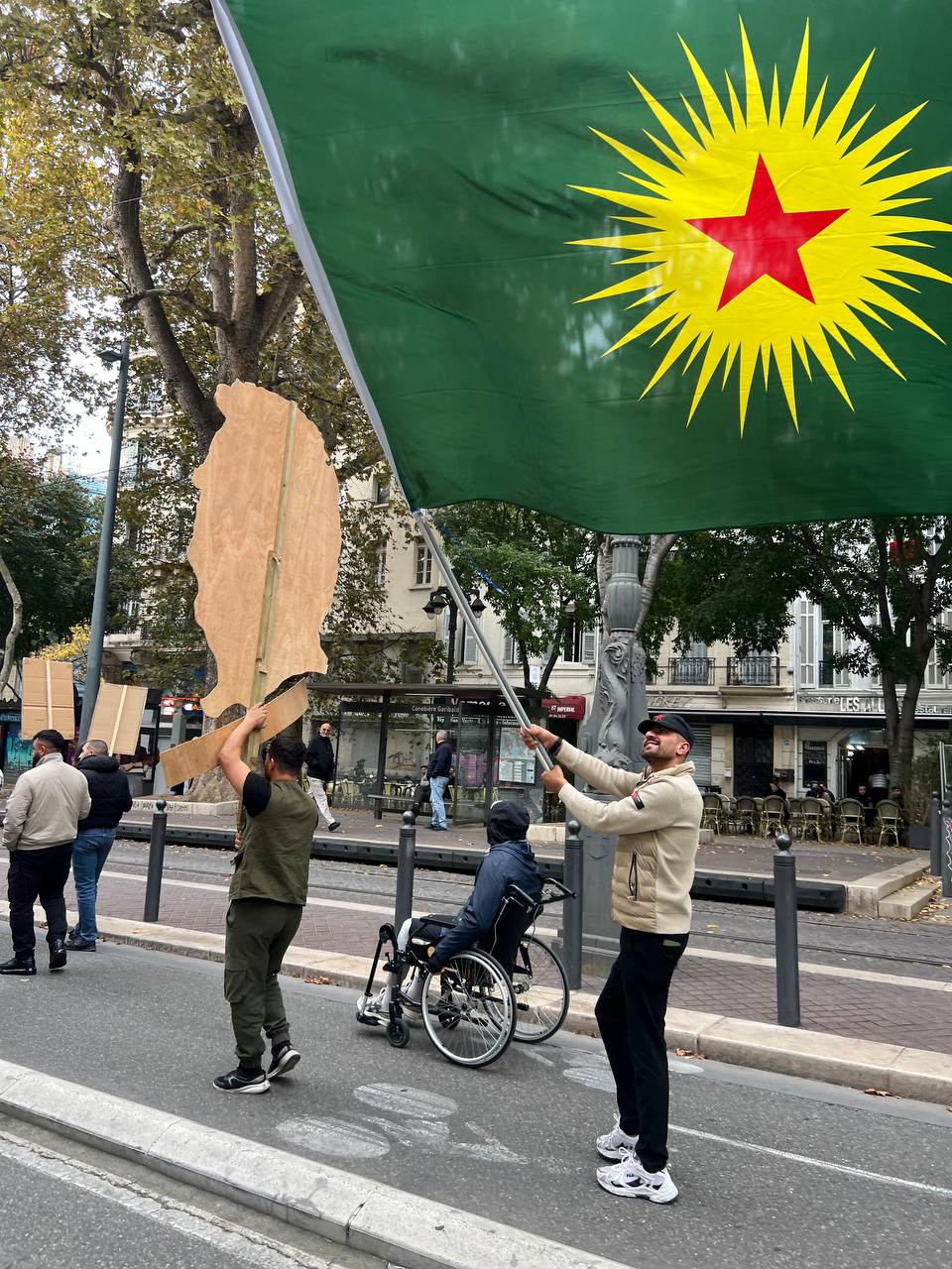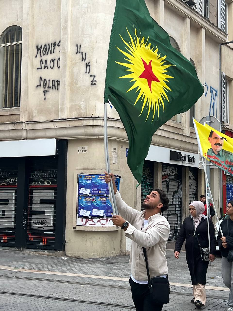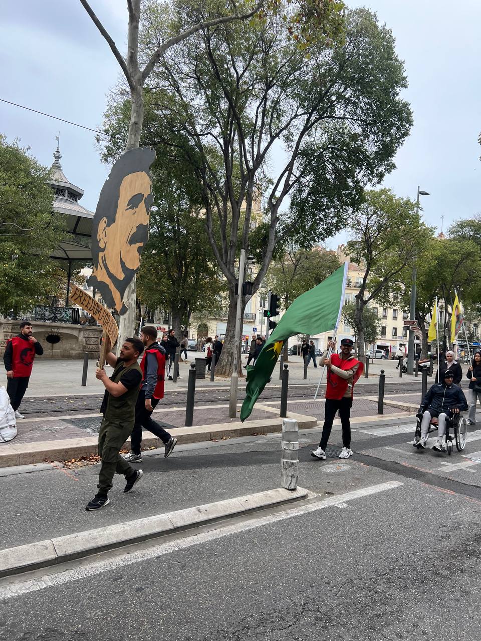 Yürüyüş boyunca “Bijî Serok APO” ve “Liberté pour Öcalan” sloganları sık sık yankılandı. Marsilya Préfecture binası önünde yapılan mitingte, Kürdistan şehitleri anısına bir dakikalık saygı duruşunda bulunuldu.