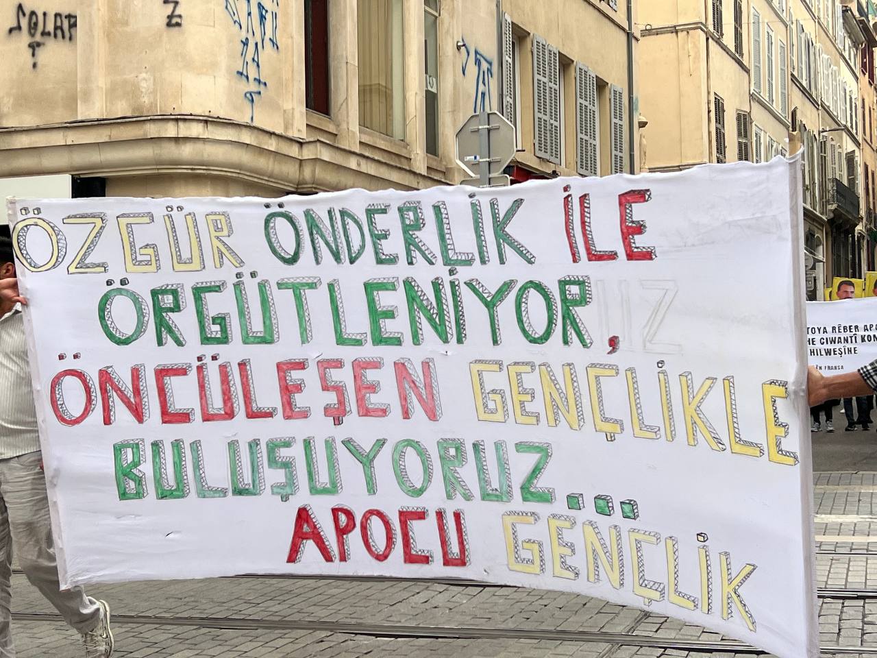 MARSİLYA– Fransa’nın Marsilya kentinde Ciwanên Kurdistanî’ ên Fransa öncülüğünde “Önder APO’ya özgürlük” şiarıyla kitlesel bir yürüyüş düzenlendi. Canebière Meydanı’nda bir araya gelen binlerce genç, Marsilya Préfecture binasına kadar yürüdü. Yürüyüşe çevredeki yurttaşlar da alkışlarla destek verdi.