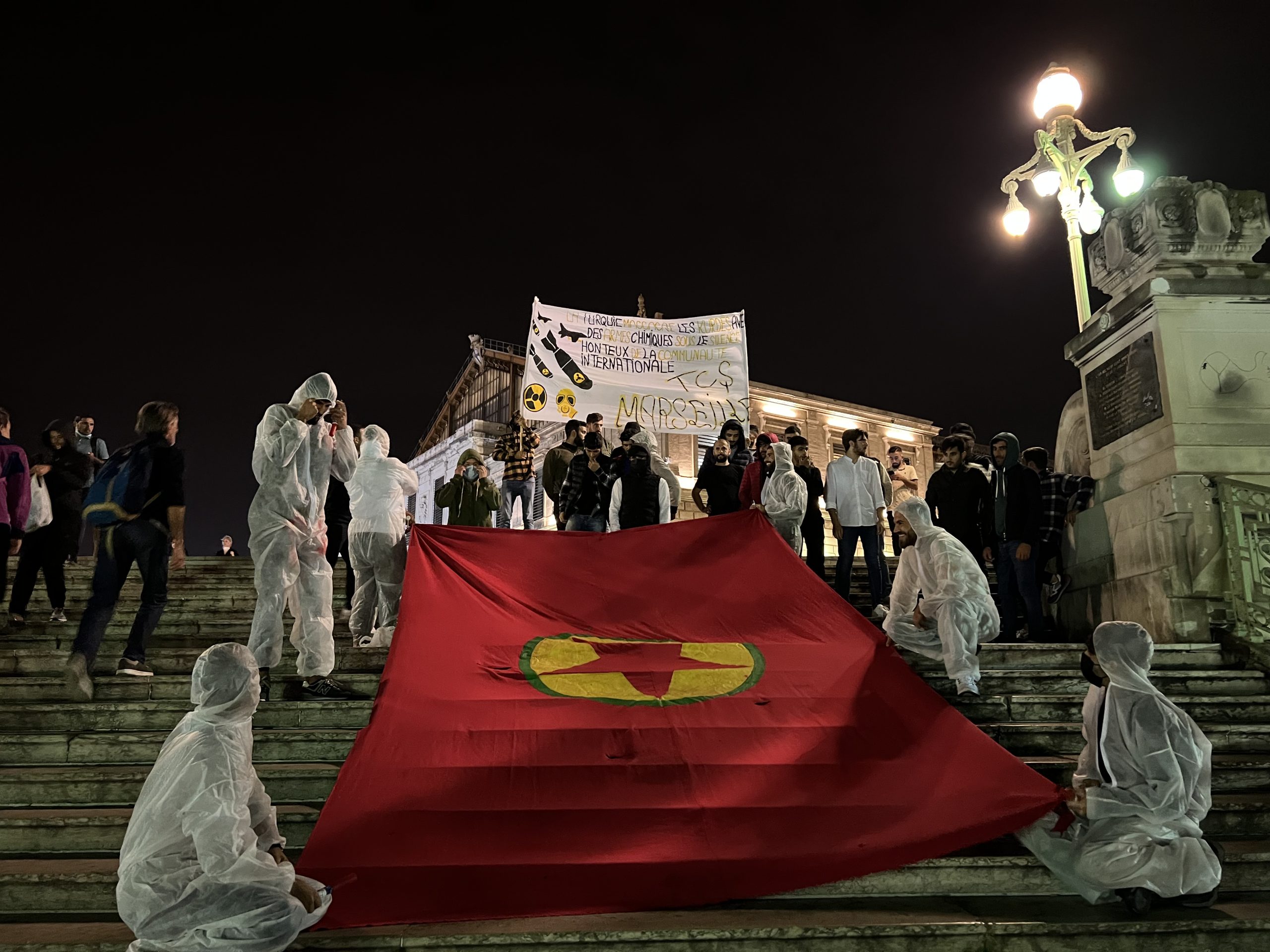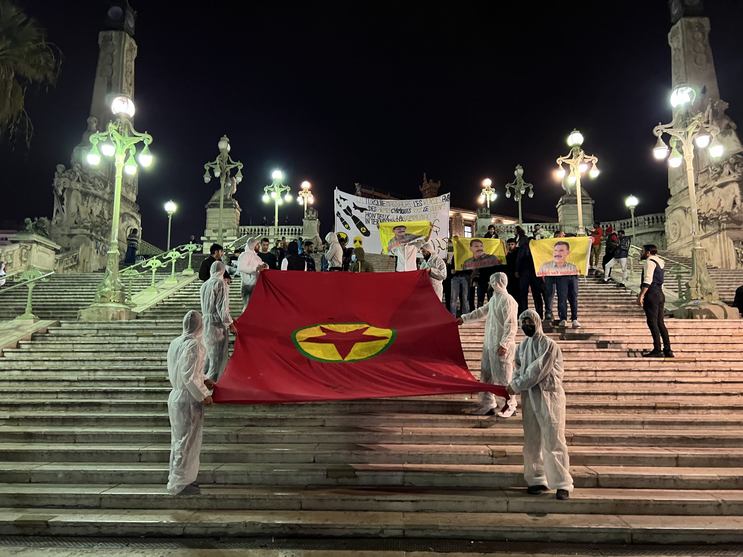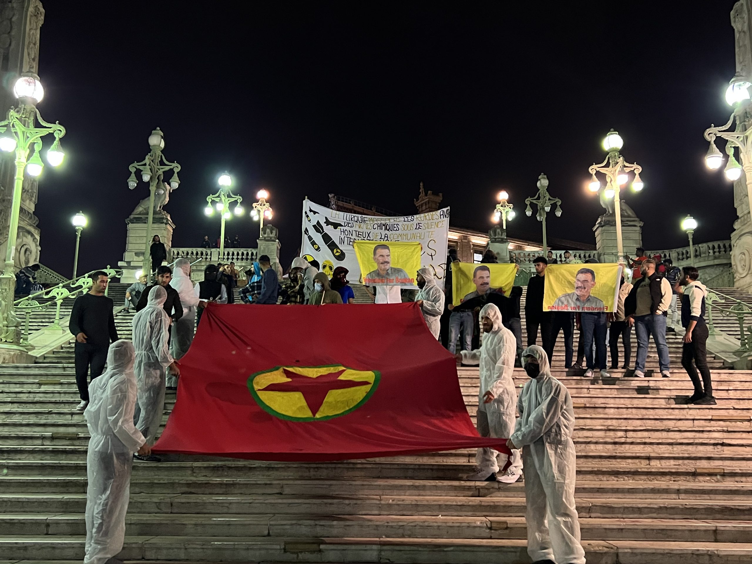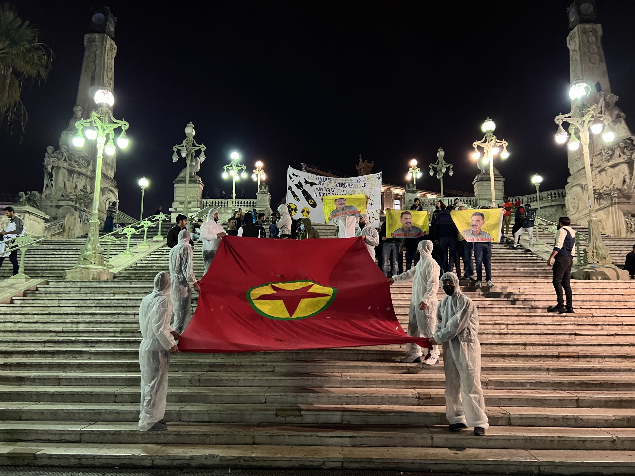 MARSİLYA – İşgalci soykırımcı Türk devletinin Medya Savunma Alanları’nda Kürt Özgürlük Gerillası’na yönelik kimyasal silah kullanımını protesto etmek için Fransa’nın Marsilya kentinde TCŞ üyeleri merkezi tren istasyonunda “Werin Cenga Azadiyê” hamlesi kapsamında sivil itaatsizlik eylemi gerçekleştirdi.