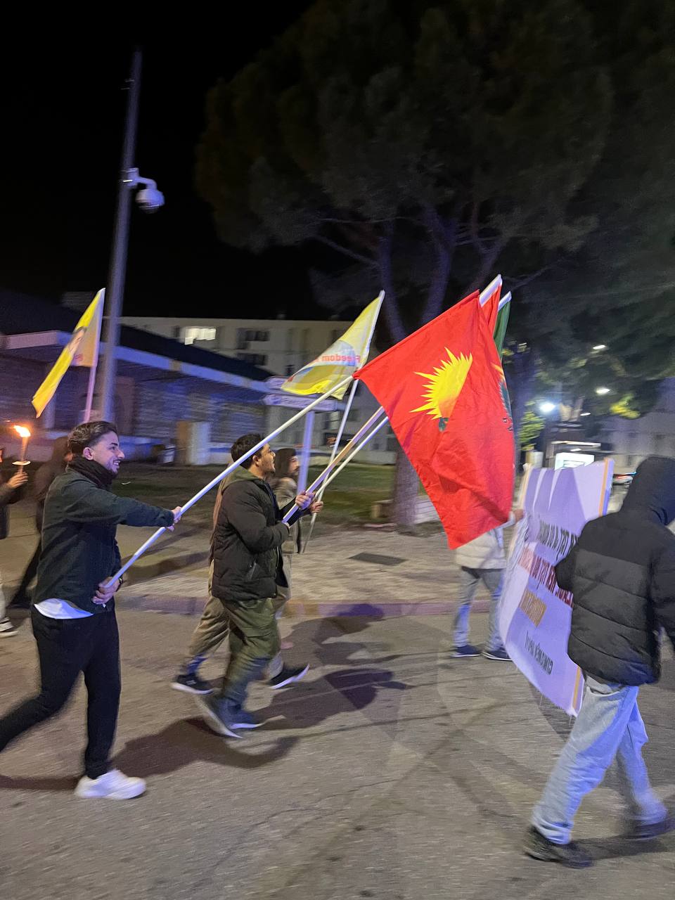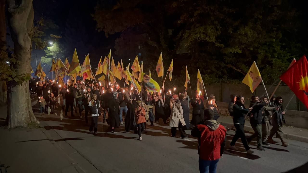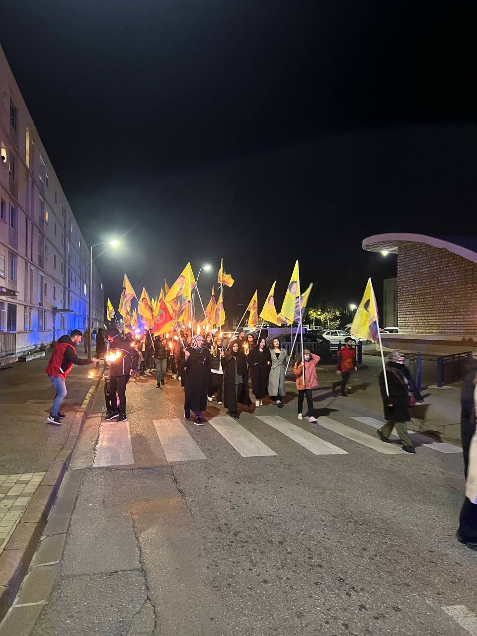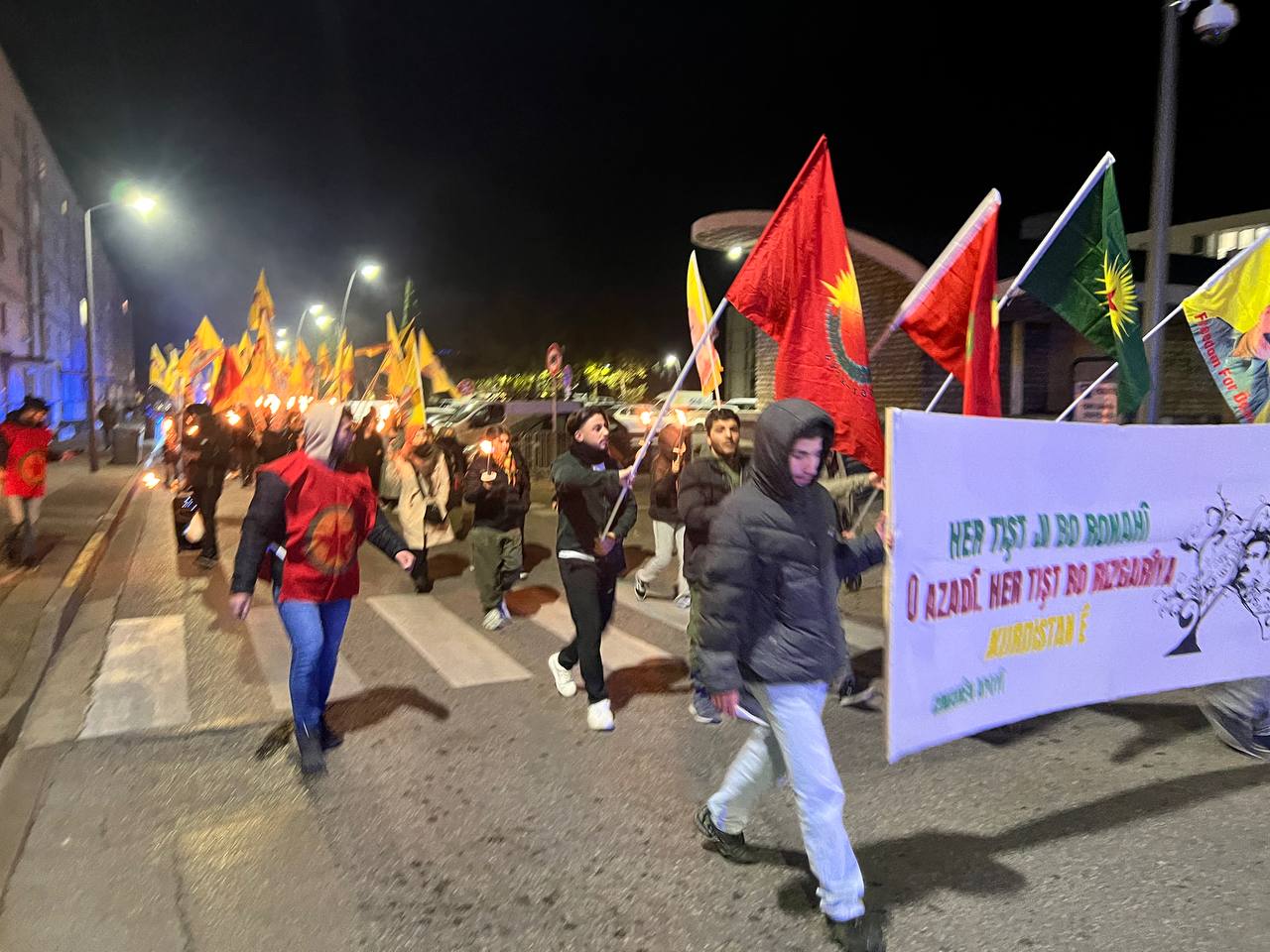 Marignane Belediyesi alanında toplanan Kürdistanlılar, meşaleler eşliğinde yürüyüş gerçekleştirdi. PKK, HPG, bayrakları ve “Her şey aydınlık ve özögürlük için. Her şey Kürdistan’ın özgürlüğü için” pankartı ile yapılan yürüyüş, sloganlar eşliğinde Marignane Derneği önüne kadar devam etti.