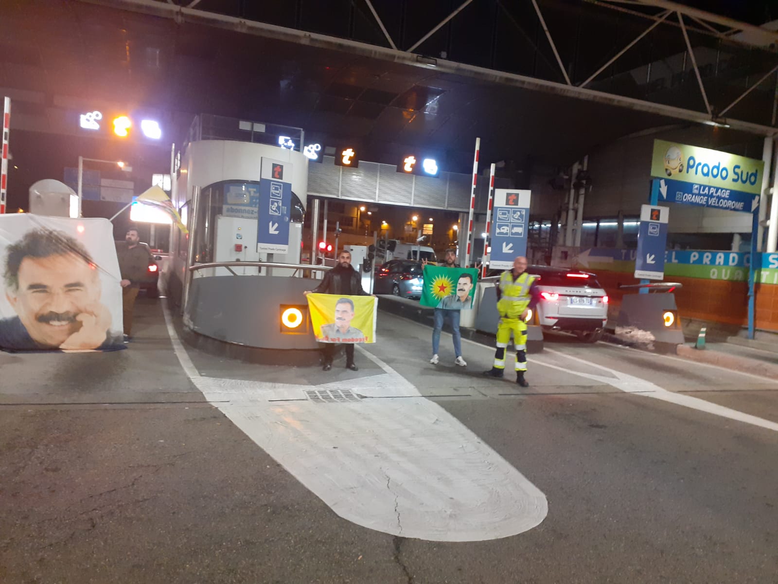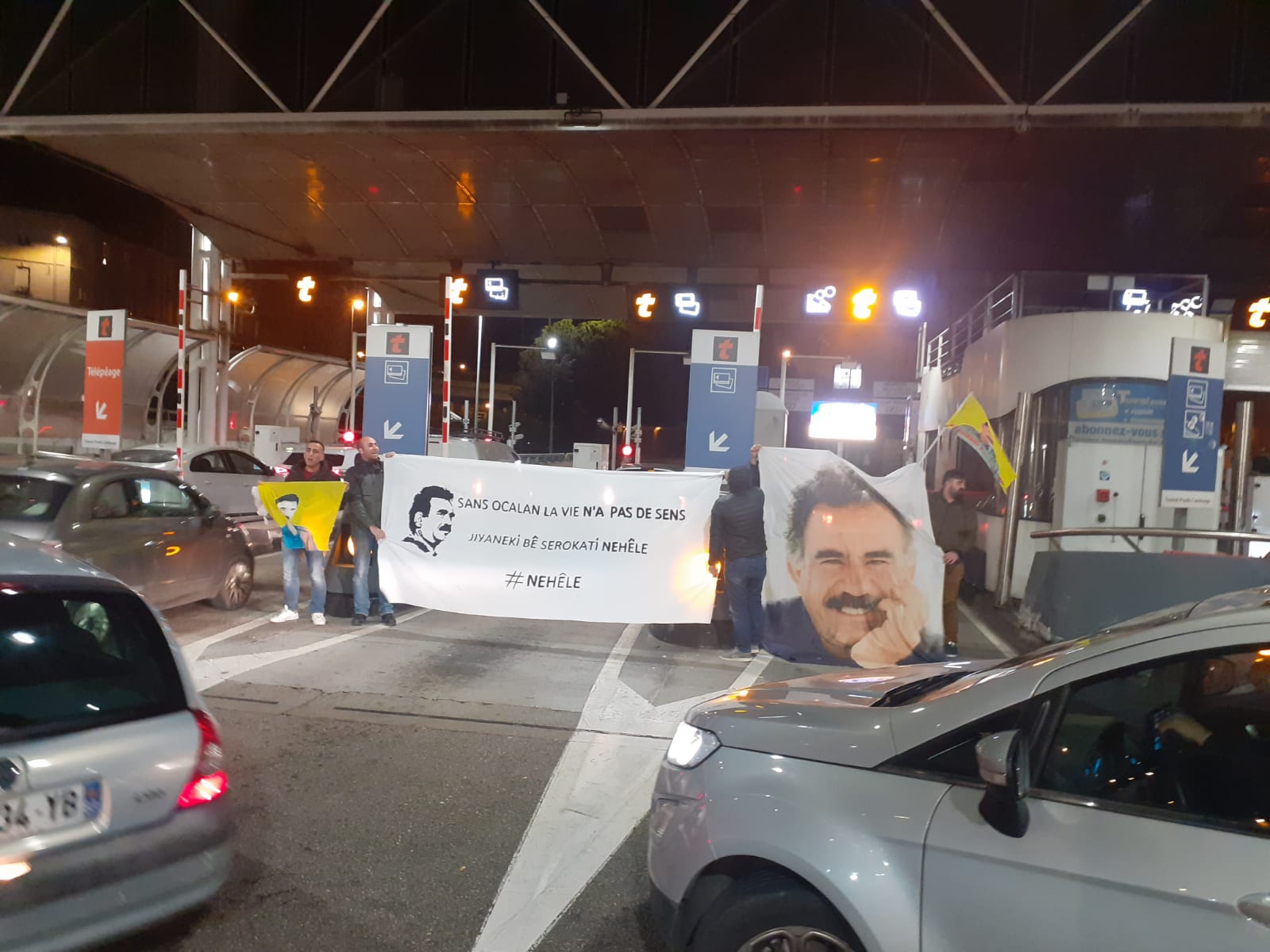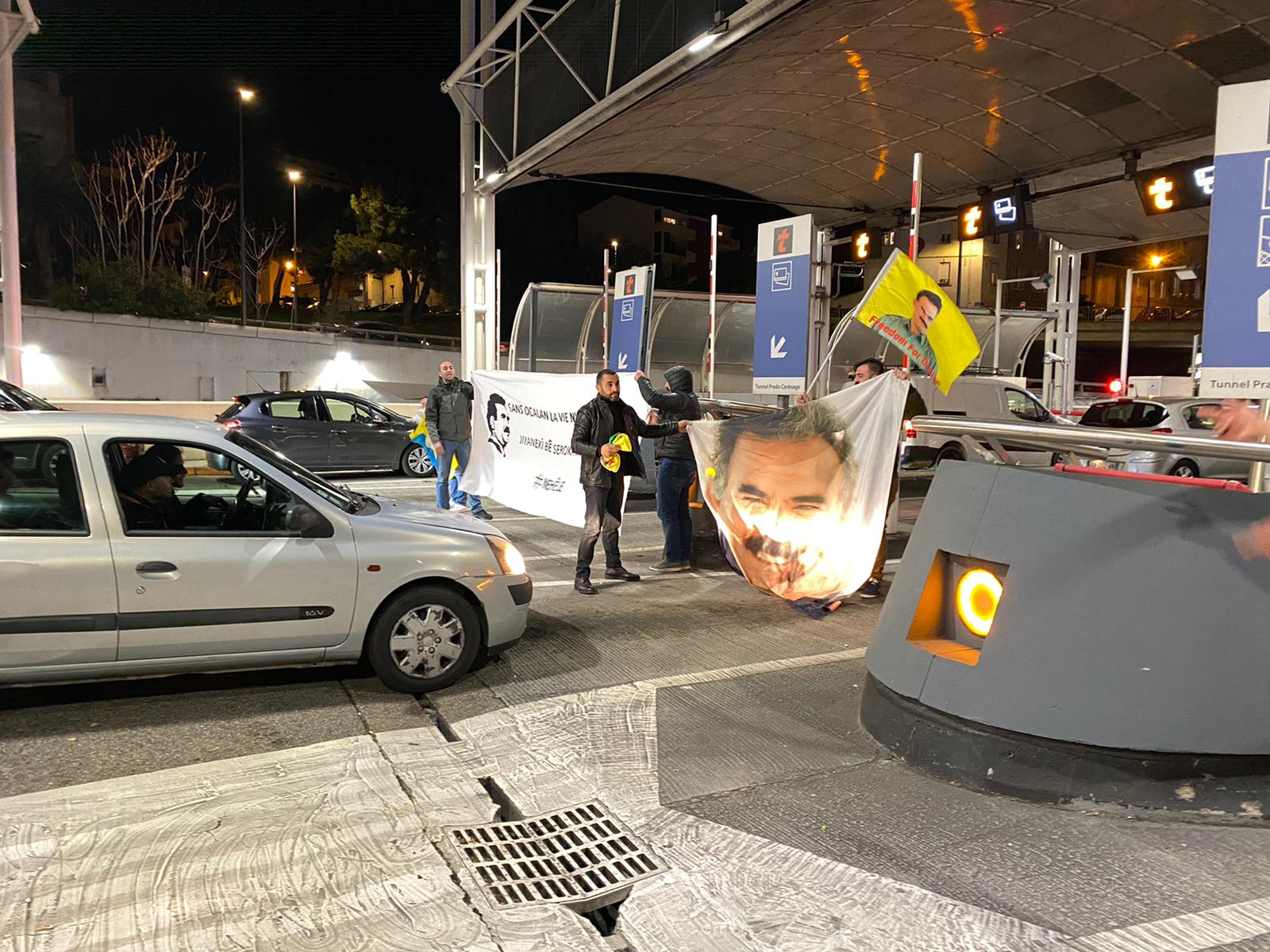 Nehêle hamlesi kapsamında ‘Tecride İzin Verme’ şiarıyla gerçekleştirilen eylem, akşam saat 20’de başladı. Toulon otoyol gişelerinde ellerinde Halklar Önderi Öcalan posterleri ve üzerinde Fransızca ve Kürtçe “Önderliksiz Yaşama İzin Verme” yazan pankart ile gişeler araç geçişine kapatıldı. Fransızca ve Kürtçe “Öcalan’a Özgürlük” ve “Bijî Serok APO” sloganlarını atan gençler, eylem sırasında bekleyen araçlara Fransızca hazırlanmış ve Halklar Önderi Öcalan’ın son durumunu anlatan bildiriler dağıttı.
