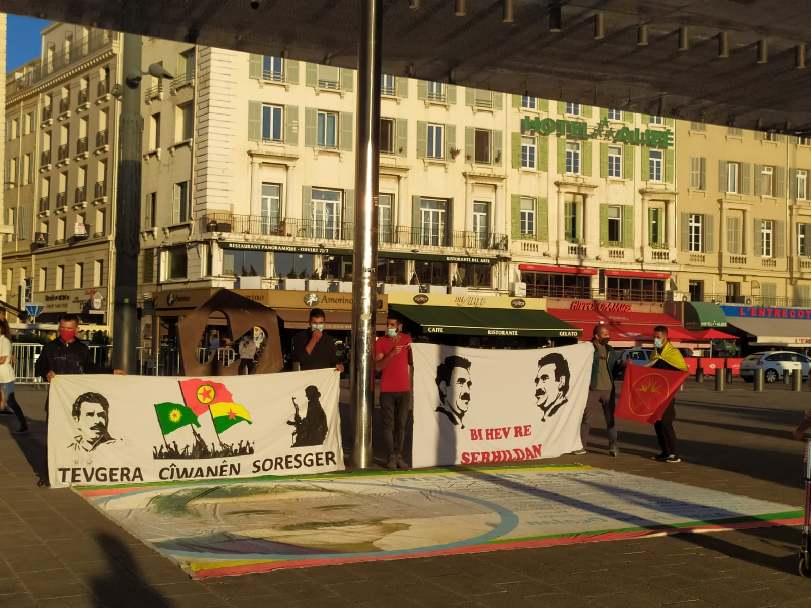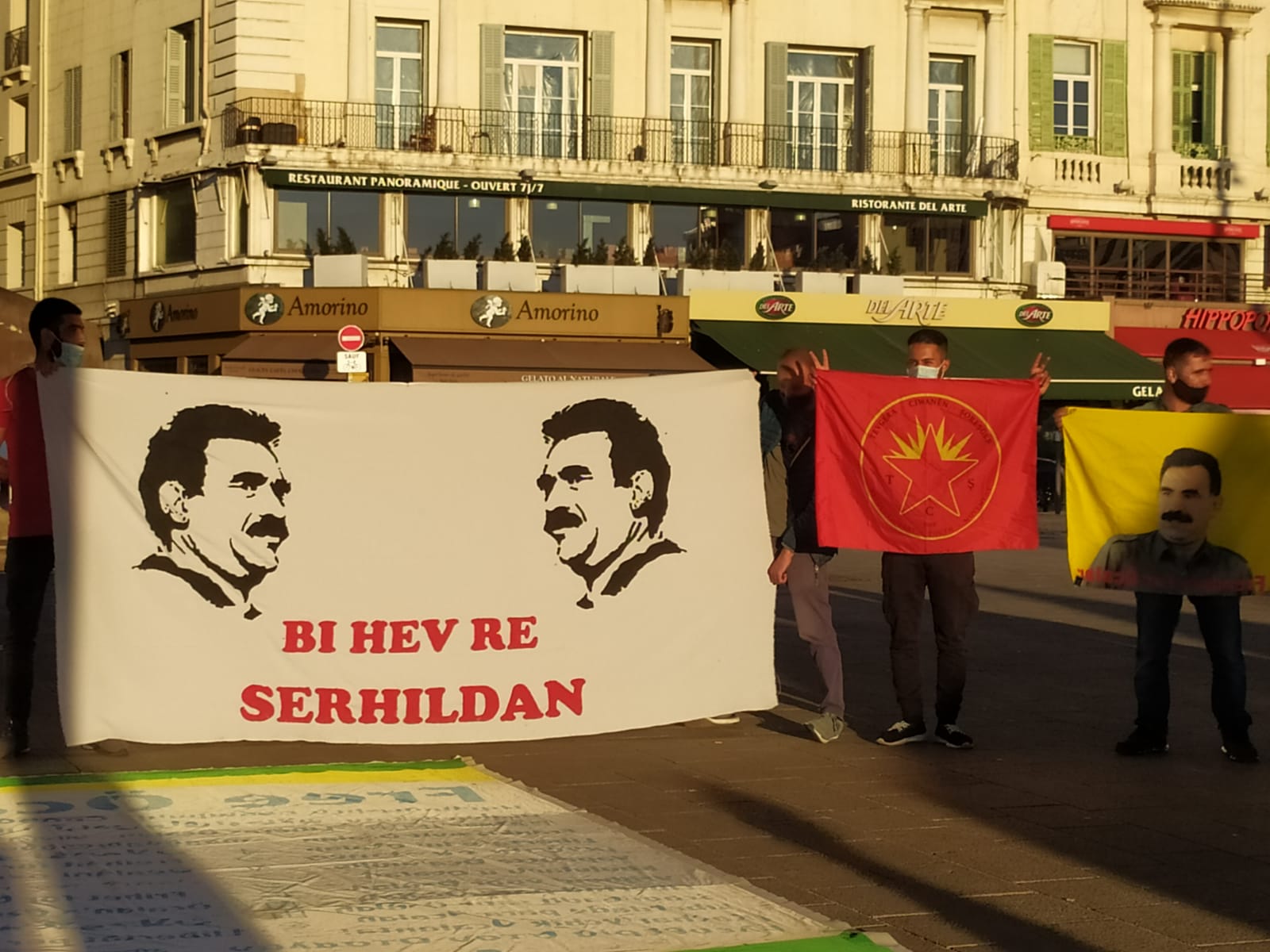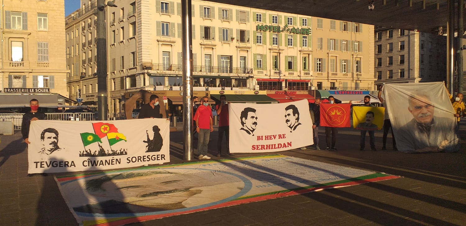 Saat 18’de Vieux Port meydanında “Bi Hev Re Serhildan” ve “Öcalan’a Özgürlük” pankartları ile bir bilgilendirme standı açtı. Fransızca hazırlanan bildiriler dağıtılırken, Kürdistan’a yönelik Türk devlet faşizmi ve Önder Öcalan üzerinde uygulanan ağırlaştırılmış tecrit hakkında halk bilgilendirildi.