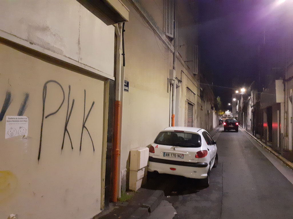 22 Nisan akşamı bir araya gelen aktivistler Nehêle hamlesi kapsamında pankart ve yazılama eylemi gerçekleştirdi. Köprüye “Stop à L’aviation turc qui bombarde les civil de Mexmûr” yazılı pankartı asan Kürt gençleri, duvarları da “PKK”, “PKK halktır halk burada”, “Defend Mexmûr”, “Katil TC hesap verecek”, “Diktatör Erdoğan” yazıları ile renklendirdi. Eylemciler Kürt gençlerini Mexmûr’a sahiplenmeye, işbirlikciliğe ve ihanete karşı mücadeleyi büyütmeye çağırdı.