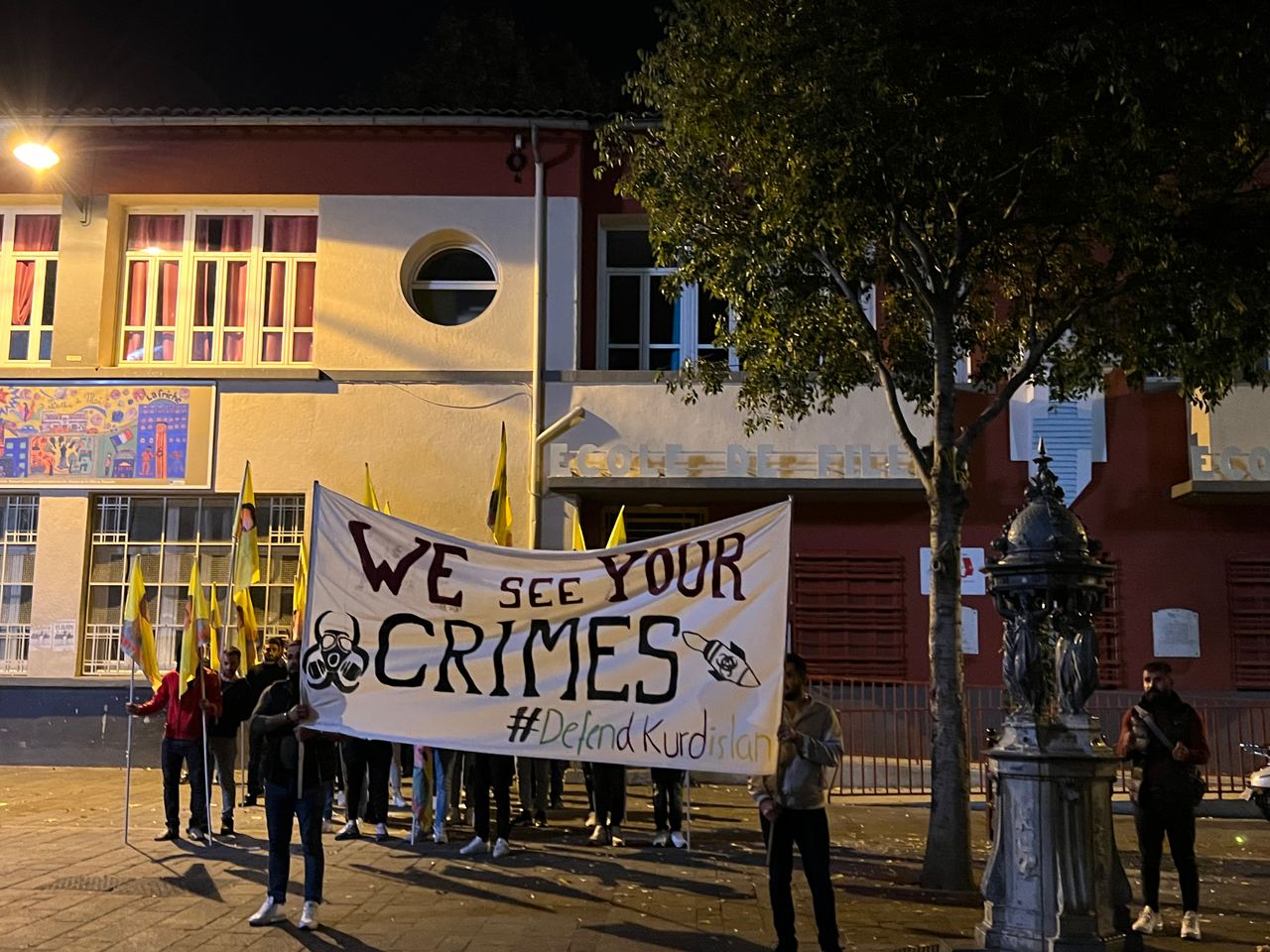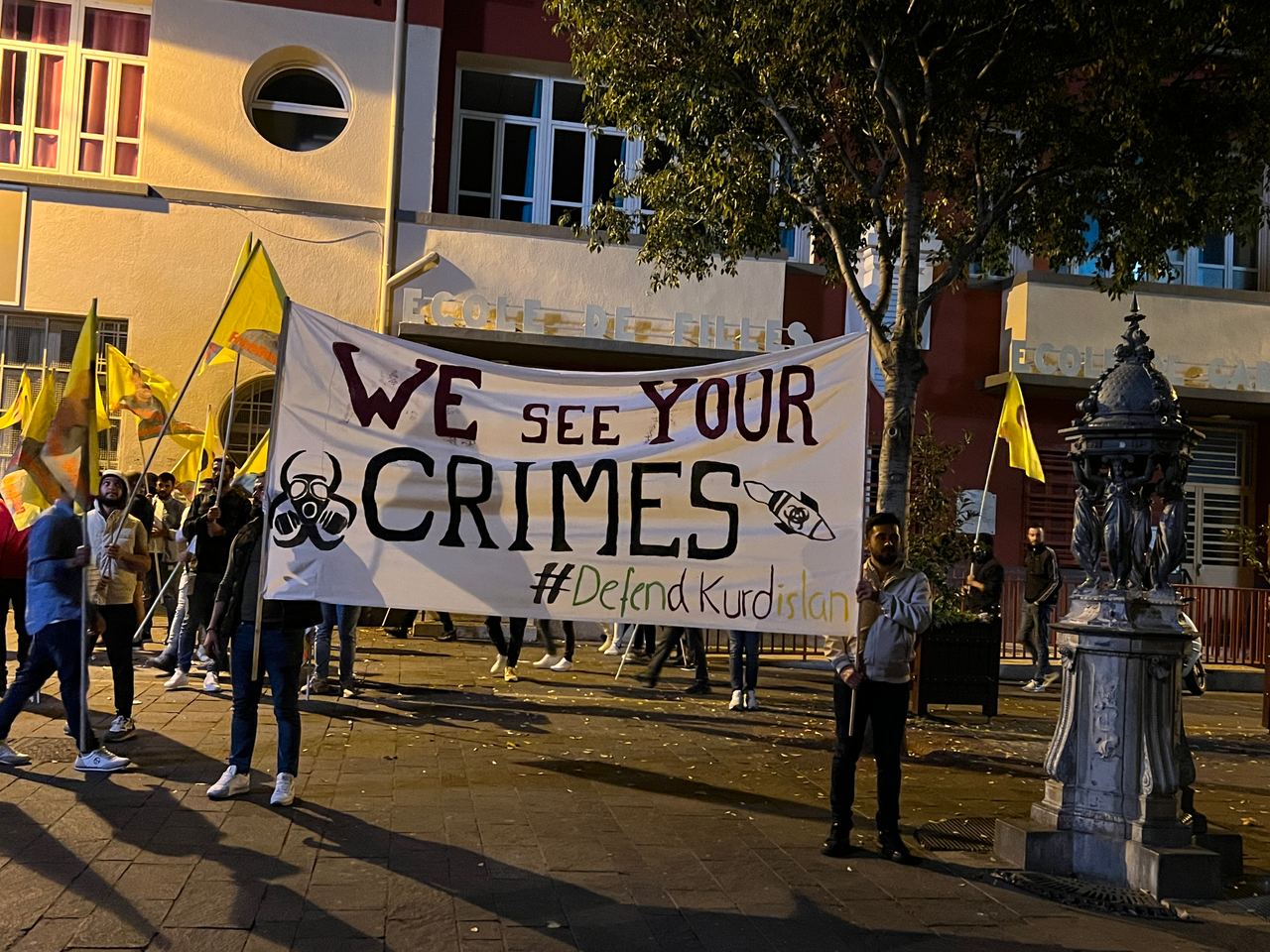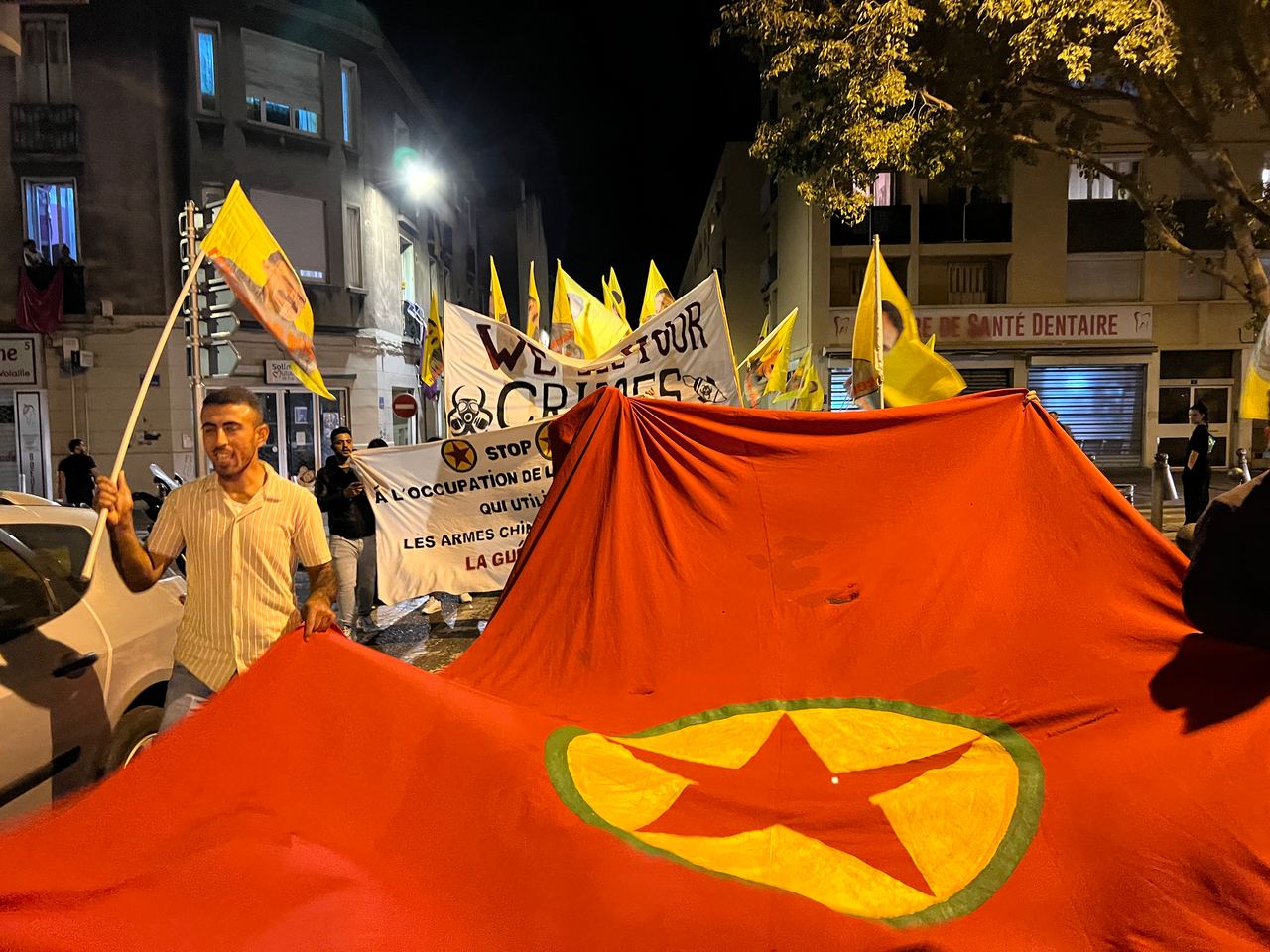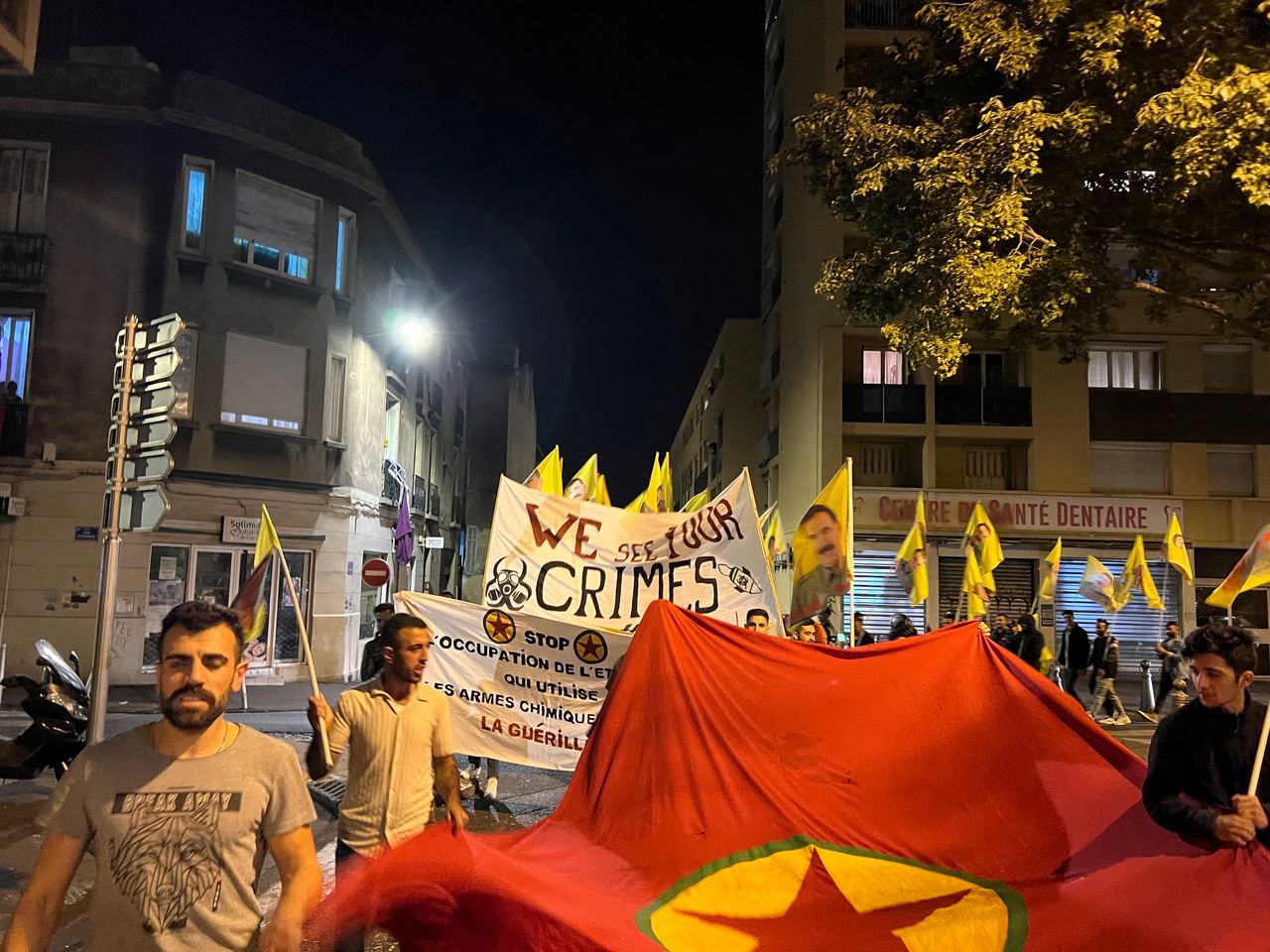 TCŞ ve TekoJIN Marsilya'da işgalci TC devletinin Medya Savunma Alanları'nda Kürdistan Özgürlük Gerillası'na dönük kimyasal silah kullanımına karşı meşaleli bir eylem gerçekleştirdi.