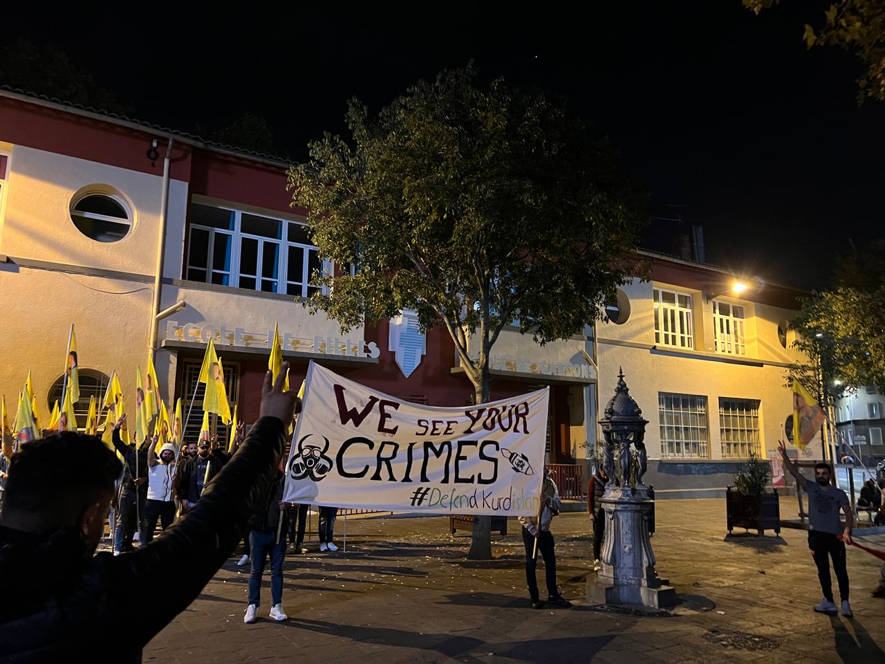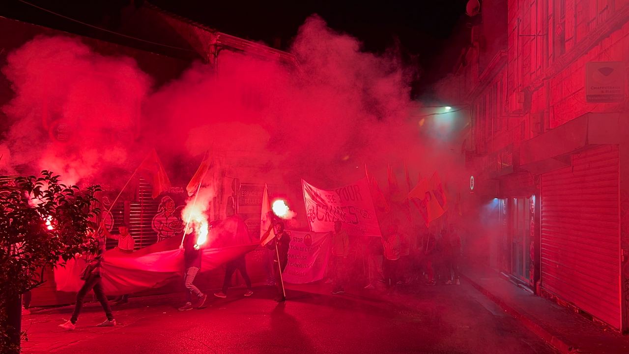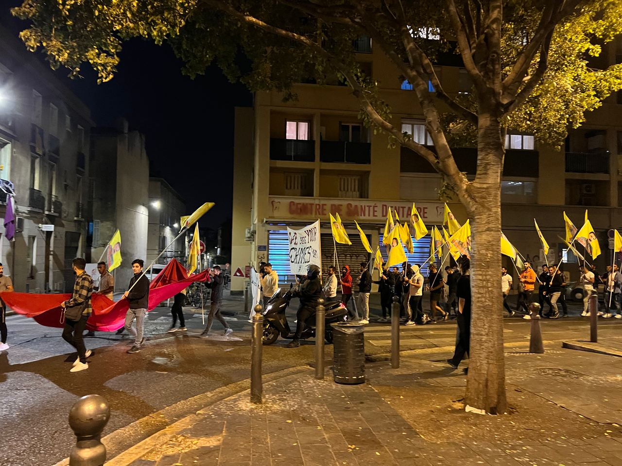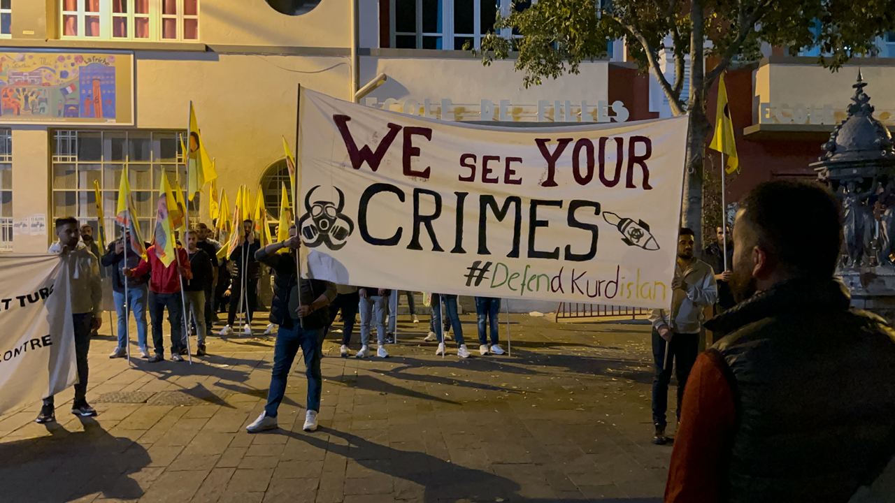 TCŞ ve TekoJIN Marsilya'da işgalci TC devletinin Medya Savunma Alanları'nda Kürdistan Özgürlük Gerillası'na dönük kimyasal silah kullanımına karşı meşaleli bir eylem gerçekleştirdi.