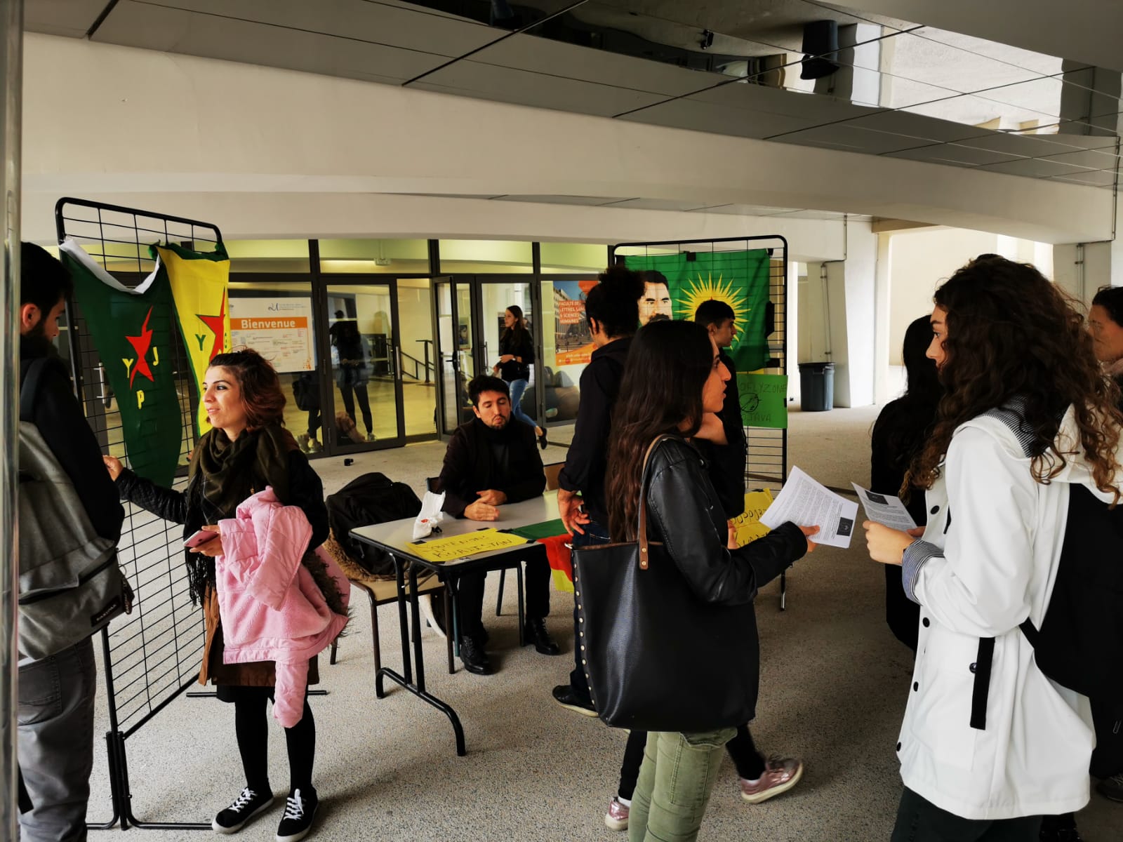 MARSİLYA – Fransa’nın Marsilya şehrinde Tevgera Ciwanên Şoreşger Rojava için Aix Üniversitesi’nde stant açtı. İşgalci Türk devletinin Rojava işgaline ilişkin pankartların açıldığı stantta çok sayıda bildiri dağıtıldı.