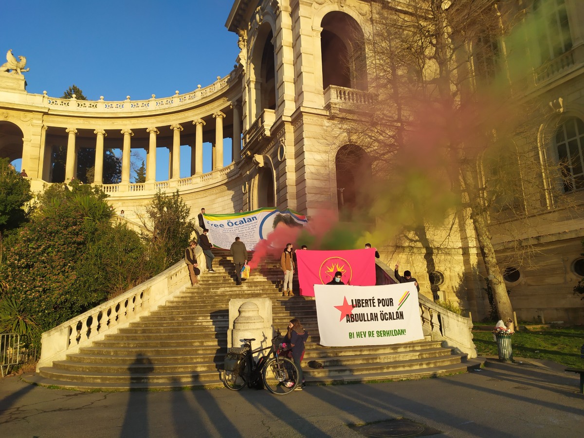 MARSİLYA – Fransa’nın Marsilya kentinde bir araya gelen TCŞ aktivisti gençler Halklar Önderi Abdullah Öcalan üzerindeki ağırlaştırılmış tecride yönelik bir eylem gerçekleştirdi. “Tecride, Faşizme, İşgale Son: Bi Hev Re Serhildan” şiarıyla akşam saatlerinde Long Champ parkında bir araya gelen aktivistler halkın yoğun olduğu bir noktada eylemlerine başladılar.