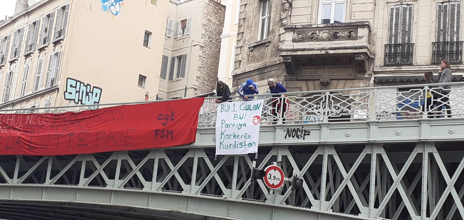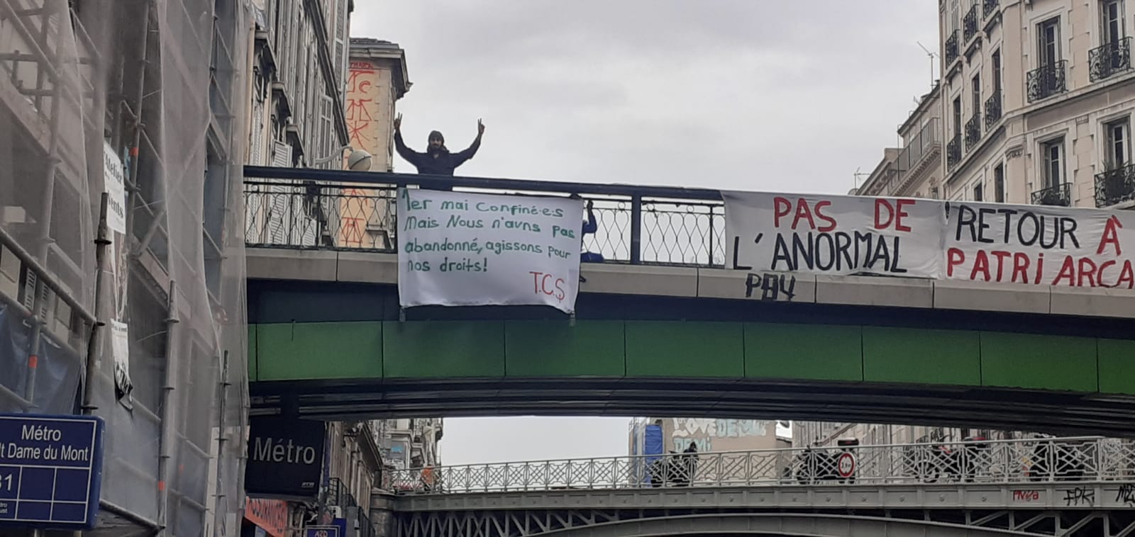 MARSİLYA – Koronavirüsü nedeniyle Fransa’nın Marsilya şehrindeki kitlesel etkinlikler iptal edilirken TCŞ aktivistleri 1 Mayıs’ı farklı noktalara pankartlar asarak kutladı.
