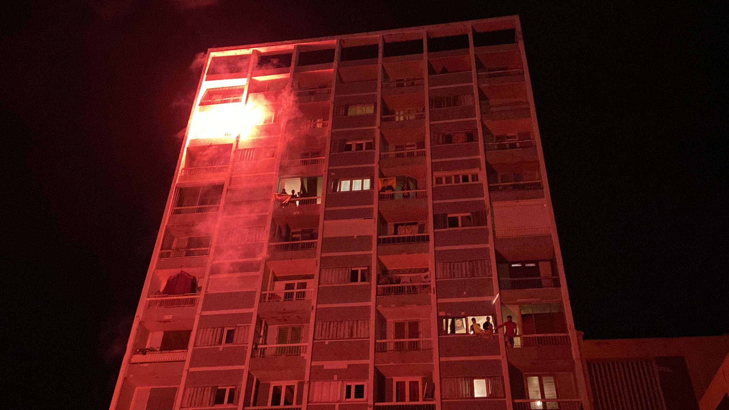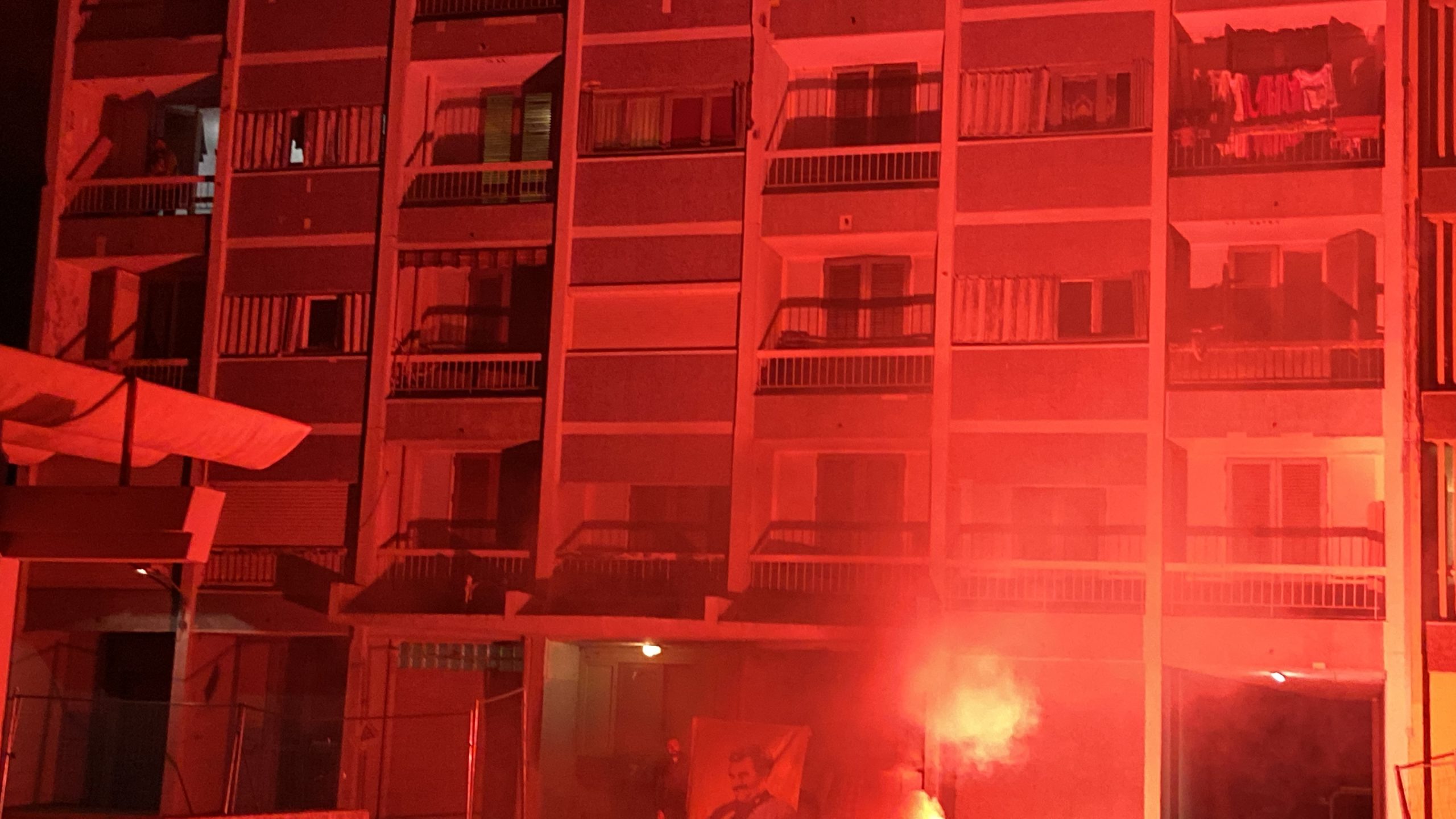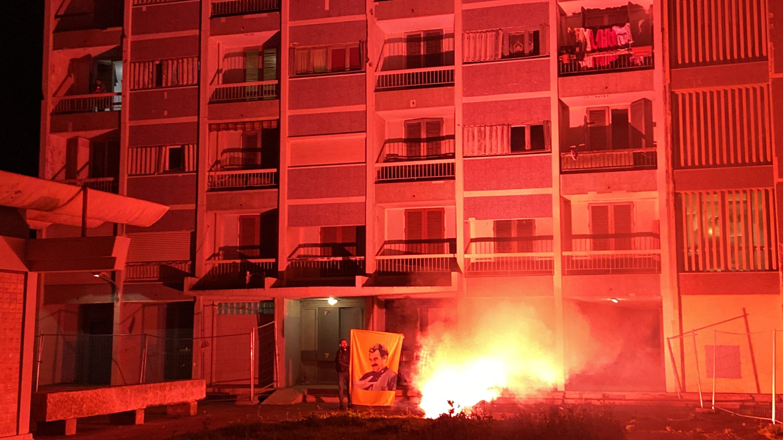 Gençler tarafından Saint Joseph mahallesinde, en yüksek binaların birinde Önder Öcalan bayrakları ve PKK bayrakları açıldı. Bina camları ve önünde açılan bayraklar dahilinde gençler meşaleler yakarak eylemlerine de dikkat çektiler