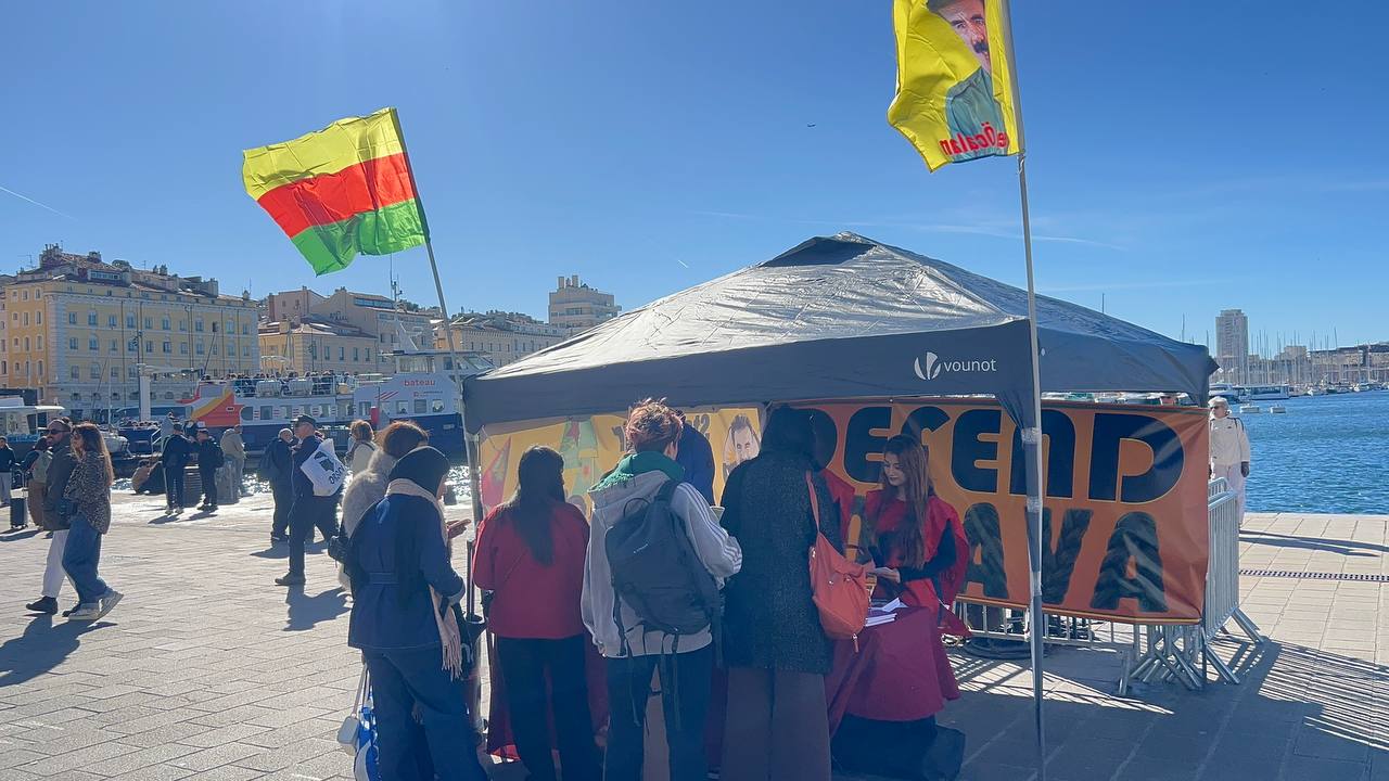 MARSİLYA – Marsilya’nın Kürt gençliği, Kürtler, Önder APO ve Rojava hakkında bilgi yaymak için Marsilya’nın vieux-port da saat 13:30’dan 16:00’ya kadar bir stand açtı.