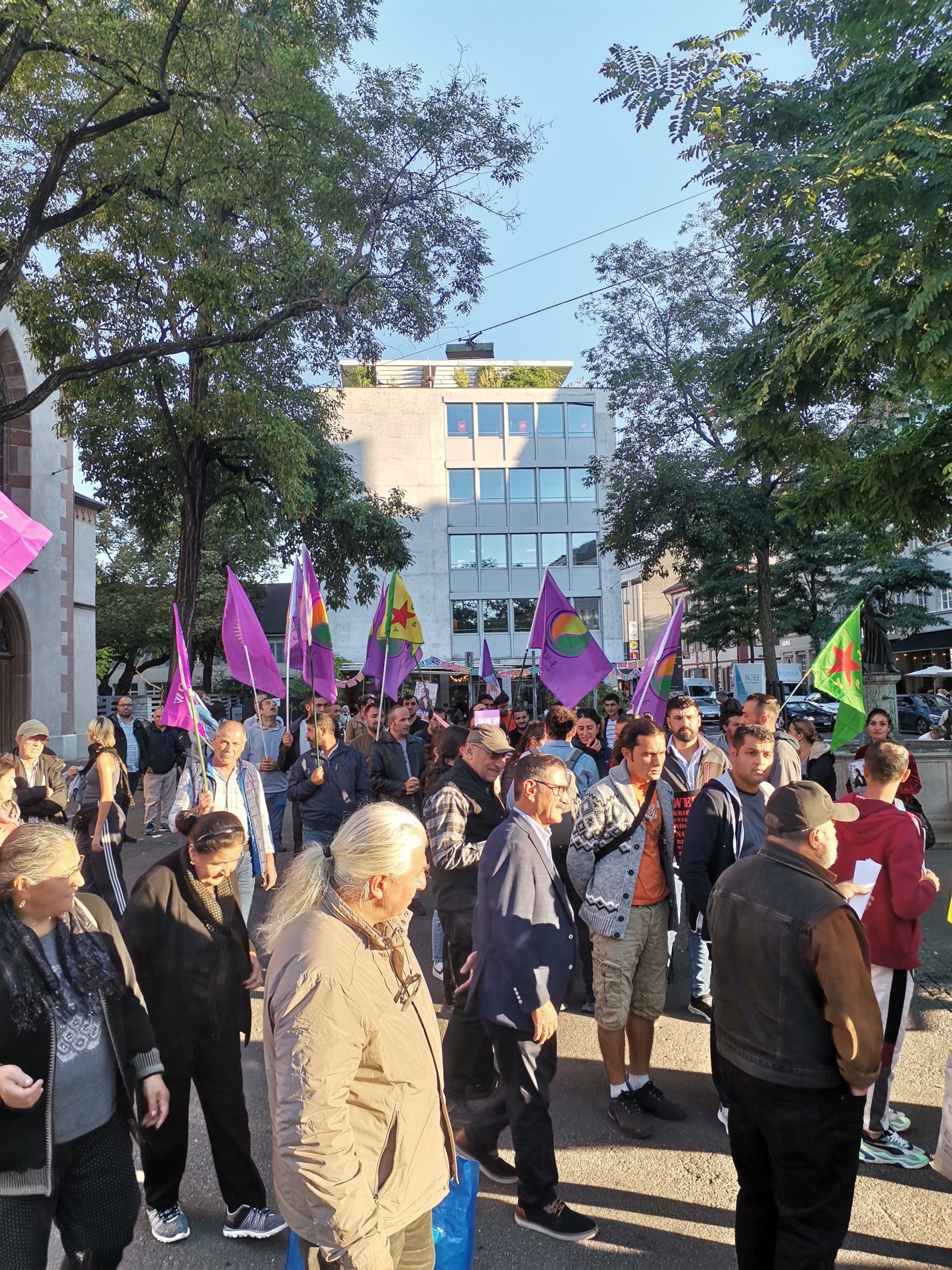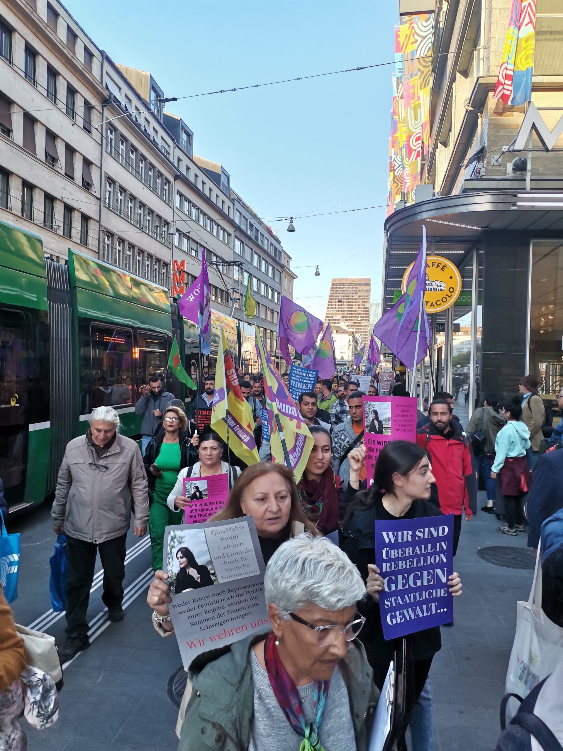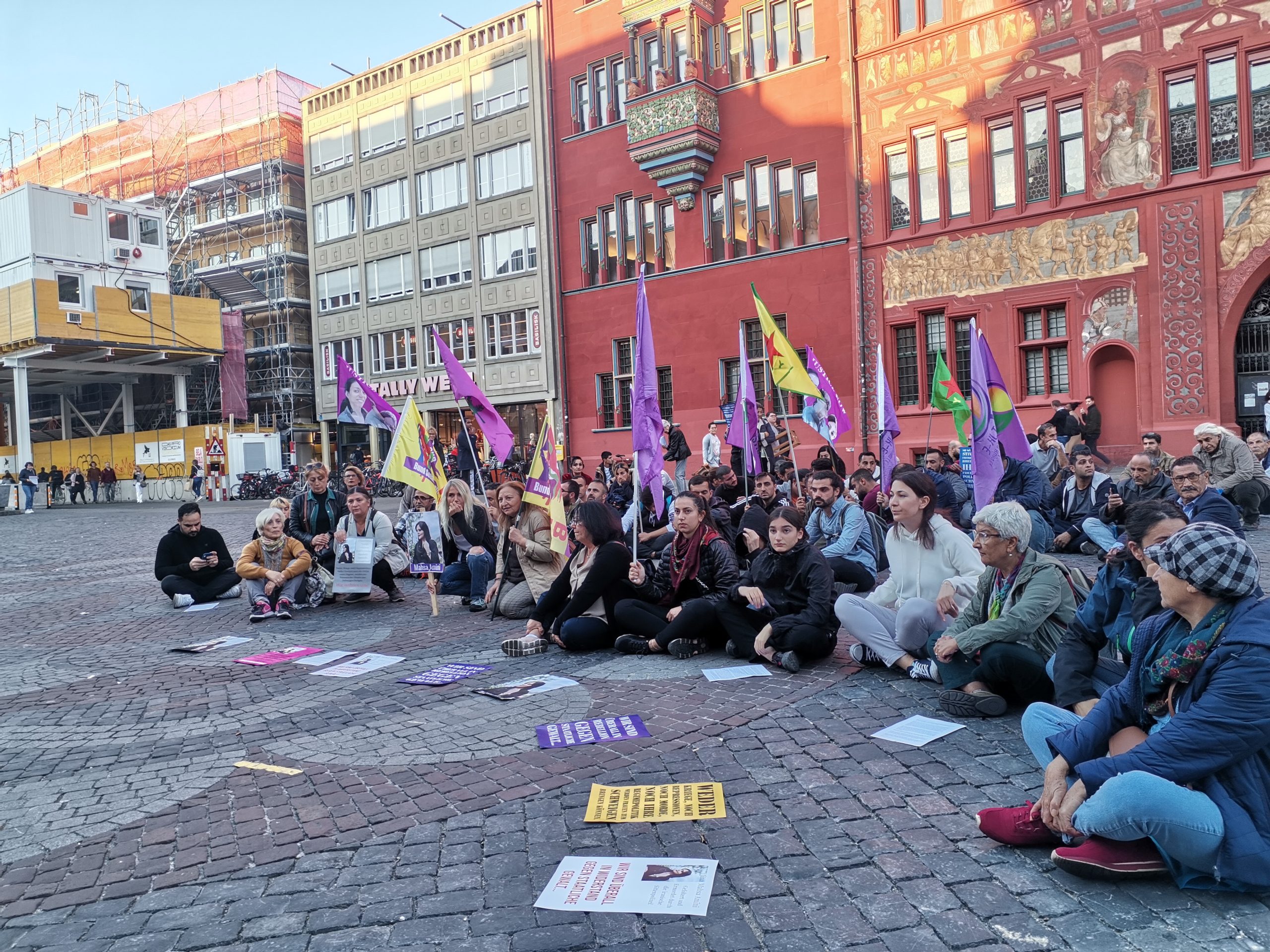 İran rejimi tarafından katledilen tüm kadınlar için 22 Eylül’de Saat 18.00 de Claraplatz’da TEKOJİN ve enternasyonalist dostların katılımıyla bir araya gelen her kesimden onlarca kadın, “Jin, jiyan, azadî”, “Bijî berxwedana Rojhilat” sloganları eşliğinde Basel Kanton Parlamentosu’nun bulunduğu Marktplatz’a yürüdü. Akabinde Basın açıklamasıyla tepkilerini dile getiren kadınlar saç kesme eylemi gerçekleştirdi. Eylem, son olarak oturma eylemiyle sonlandırıldı.