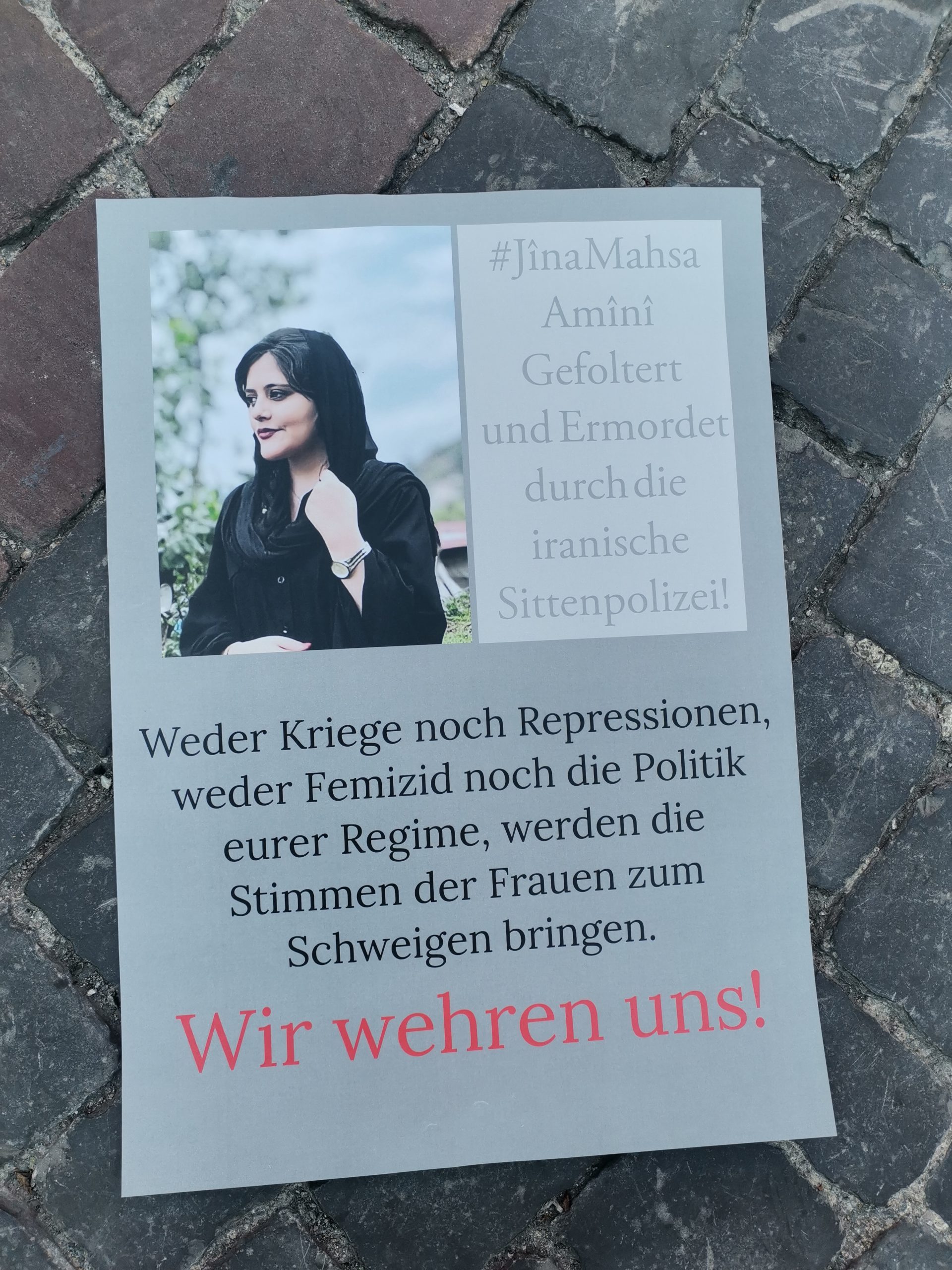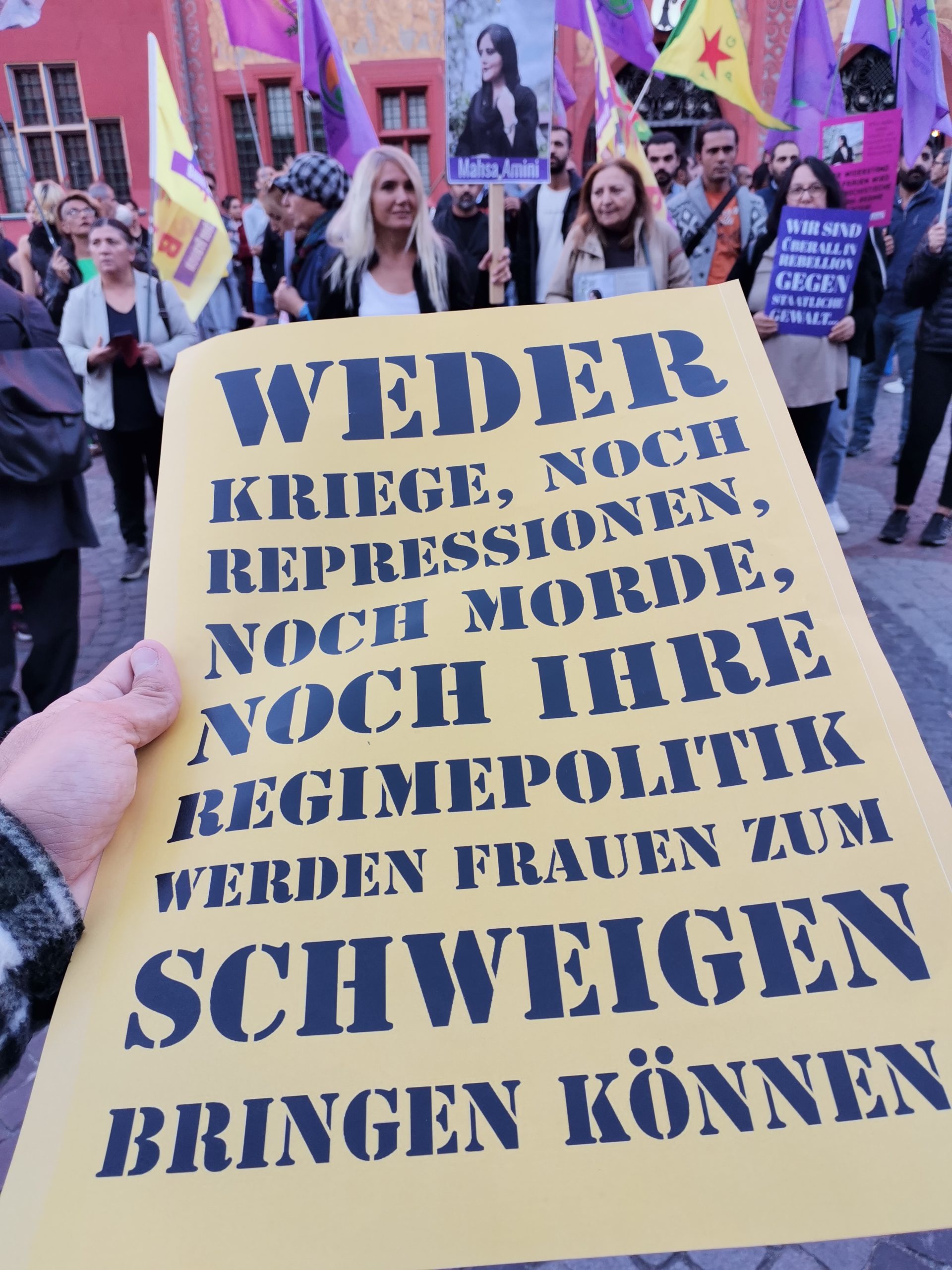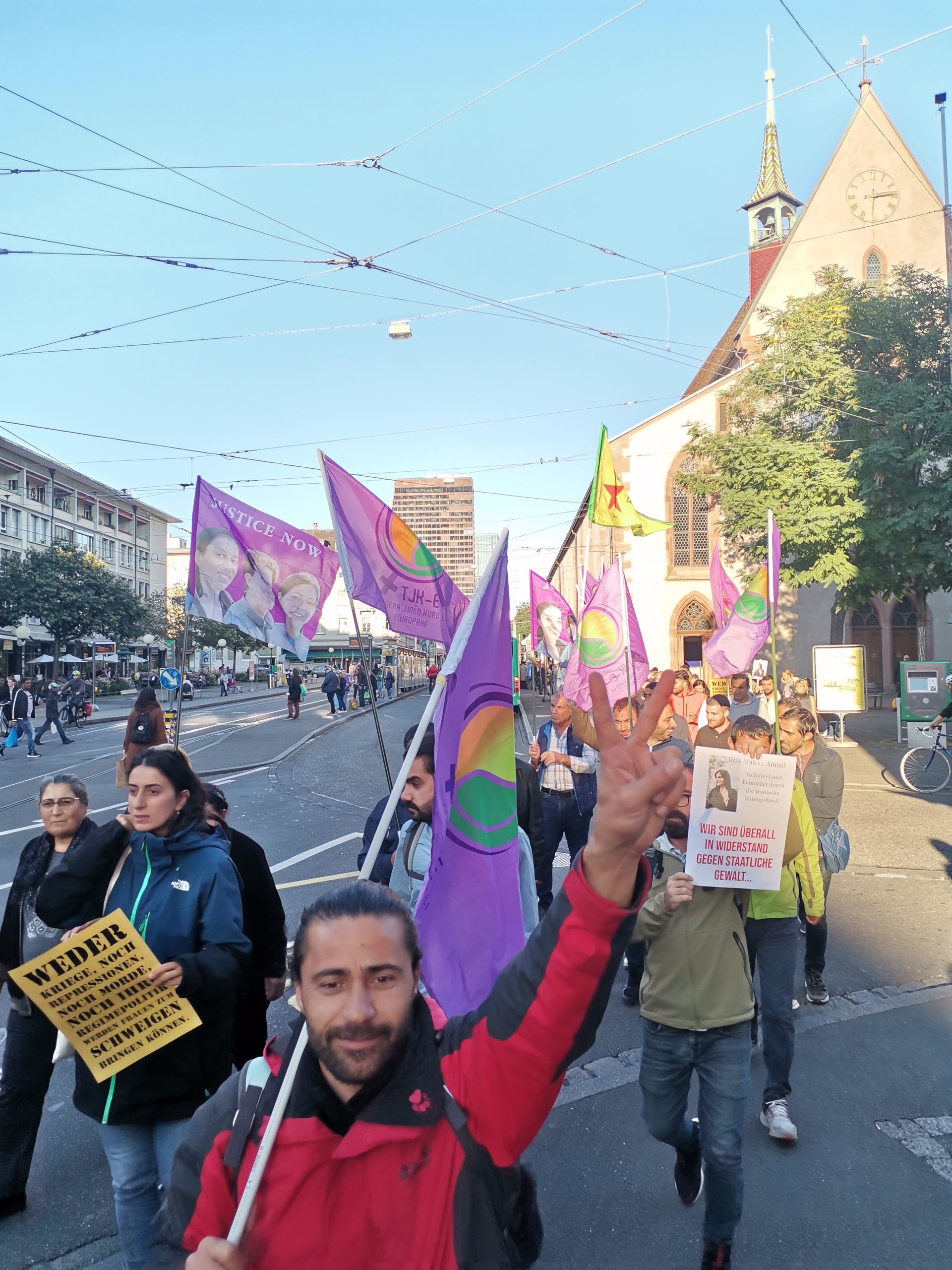 İran rejimi tarafından katledilen tüm kadınlar için 22 Eylül’de Saat 18.00 de Claraplatz’da TEKOJİN ve enternasyonalist dostların katılımıyla bir araya gelen her kesimden onlarca kadın, “Jin, jiyan, azadî”, “Bijî berxwedana Rojhilat” sloganları eşliğinde Basel Kanton Parlamentosu’nun bulunduğu Marktplatz’a yürüdü. Akabinde Basın açıklamasıyla tepkilerini dile getiren kadınlar saç kesme eylemi gerçekleştirdi. Eylem, son olarak oturma eylemiyle sonlandırıldı.