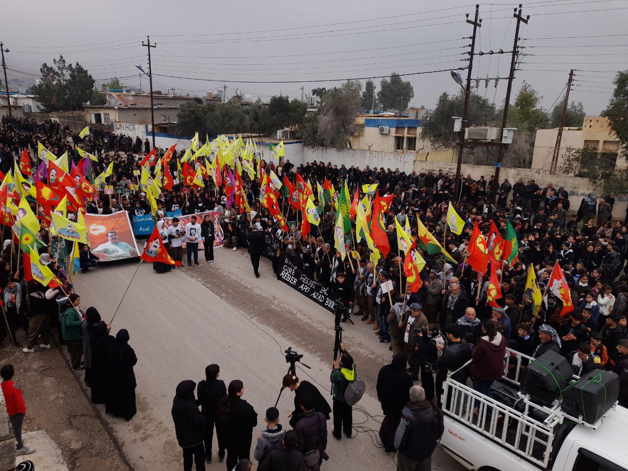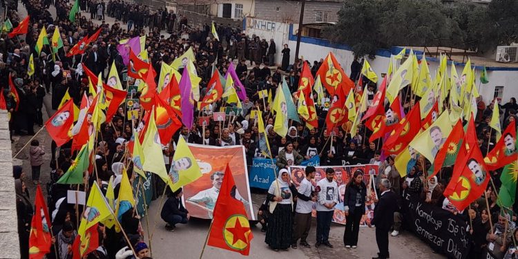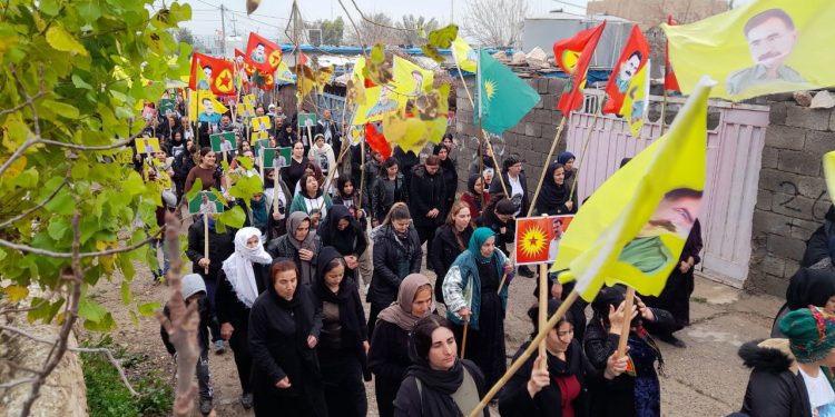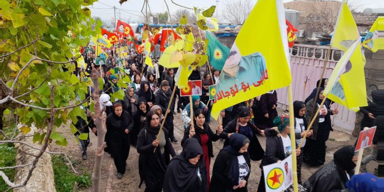 Yürüyüş, ‘Bijî Serok Apo’ ‘Bê Serok jiyan nabe’ sloganlarıyla sona erdi.