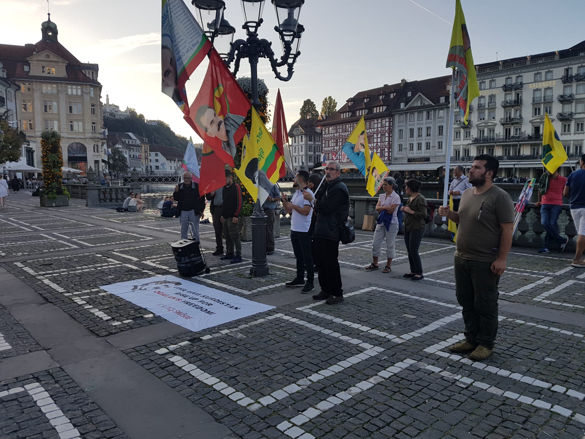 SOLOTHURN- Hewlêr’de 17 Temmuz’da Türk istihbarat sorumlusuna yönelik eylem bahane gösterilerek Şehit Rüstem Cudi (Maxmur) Mülteci Kampına uygulanan ambargo İsviçre’nin Luzern kentinde bulunan Theaterplatz meydanında protesto edildi.