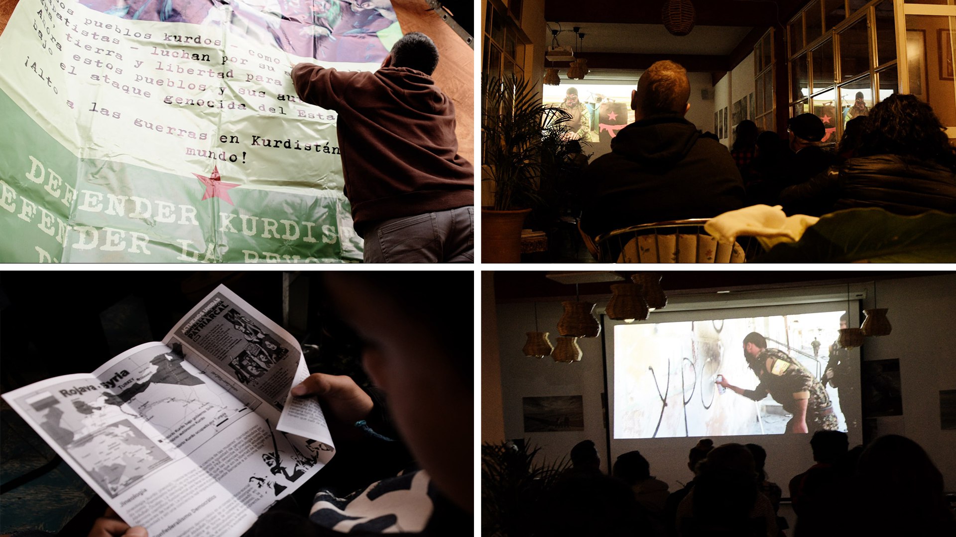 Etkinlik İspanyol gazeteci Ferran Barber tarafından Rojava için hazırlanan belgesel gösterimiyle başladı. Etkinlik boyunca işgalci TC devletinin Kurdistan dağlarına dönük kimyasal saldırılar ve Rojava devrimine dönük saldırılar tartışıldı. Katılımcılara mevcut durum hakkında bilgilendirme yapıldı. Tartışmalarda Önder Apo’nun fikir ve felsefesiyle açığa çıkan demokratik konfederalizm düşüncesinin bütün dünya halkları için bir umut kaynağı olduğu belirtildi.