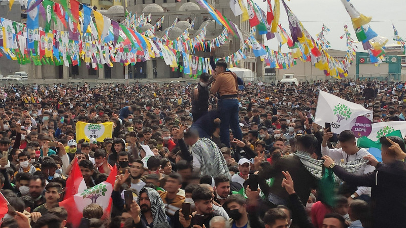 Newrozu kutlamak isteyenler alana polislerce kurulan kontrol noktalarından alındı. Öncesinde Tertip Komitesi koronavirüs salgınına karşı kutlama için gelenlere dezenfektan ve maske dağıttı. Halkın alana zafer işaretleri yapıp, zılgıtlar çekerek giriş yaptı.
