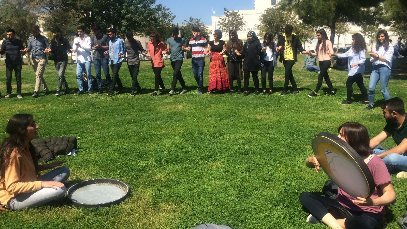 Mersin Üniversitesi öğrencileri Kampüs içerisinde şarkılarla Newrozu kutladı.