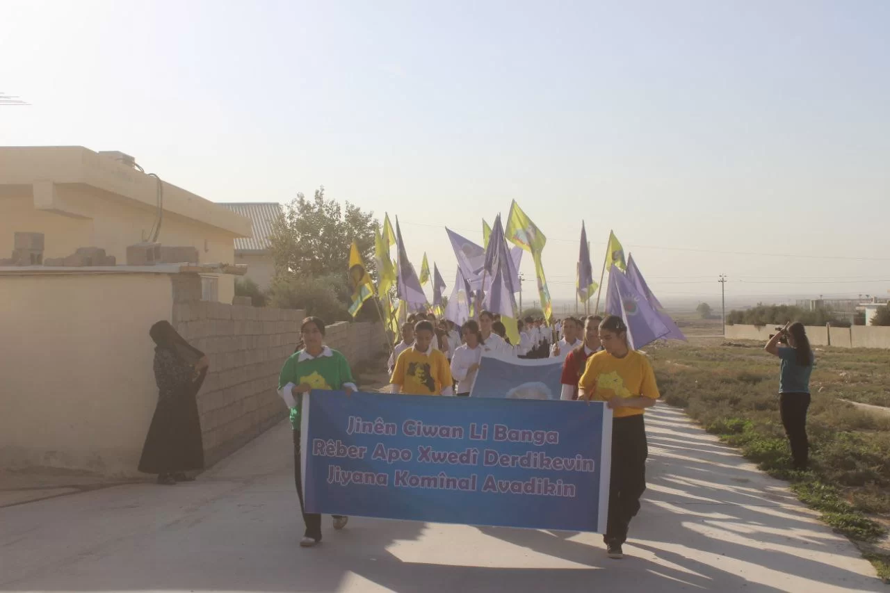 MEXMÛR – Mexmûr Genç Kadın Hareketi, “Genç Kadınlar Önder APO’nun çağrısına sahip çıkıyor ve komünal yaşamı inşa ediyor” şiarıyla Önder APO’nun fiziki özgürlüğü için bir yürüyüş düzenledi.
