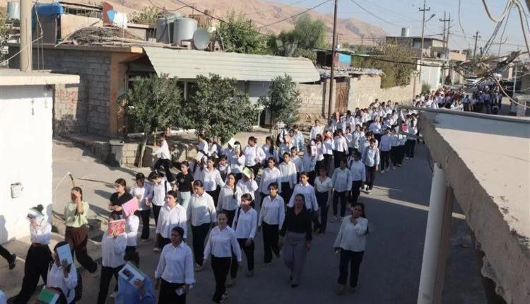 Yürüyüş, Şehîd Koçerîn Okulu önünden başladı ve Şehîd Aryen Cûdî Parkı’nda sona erdi.