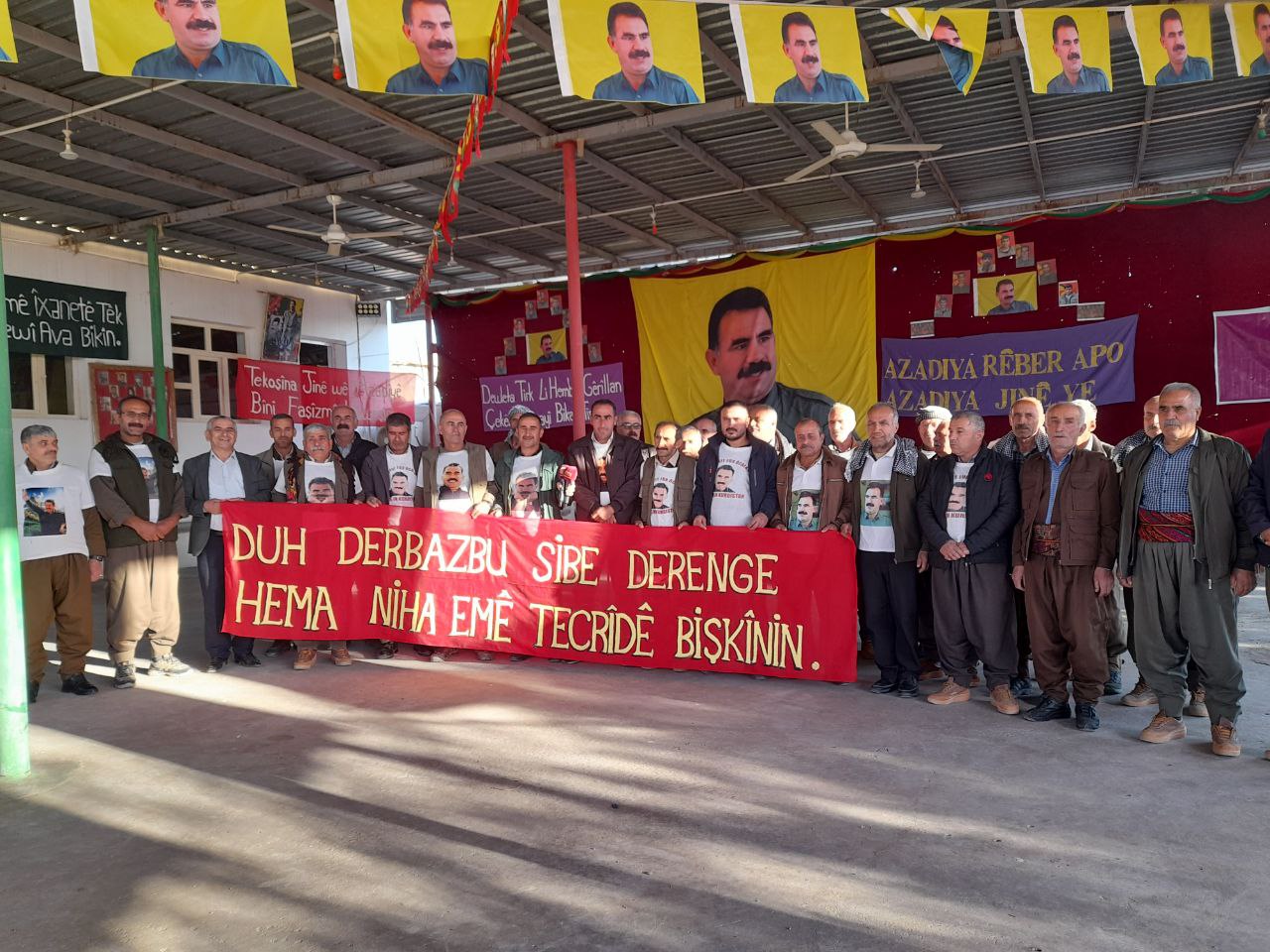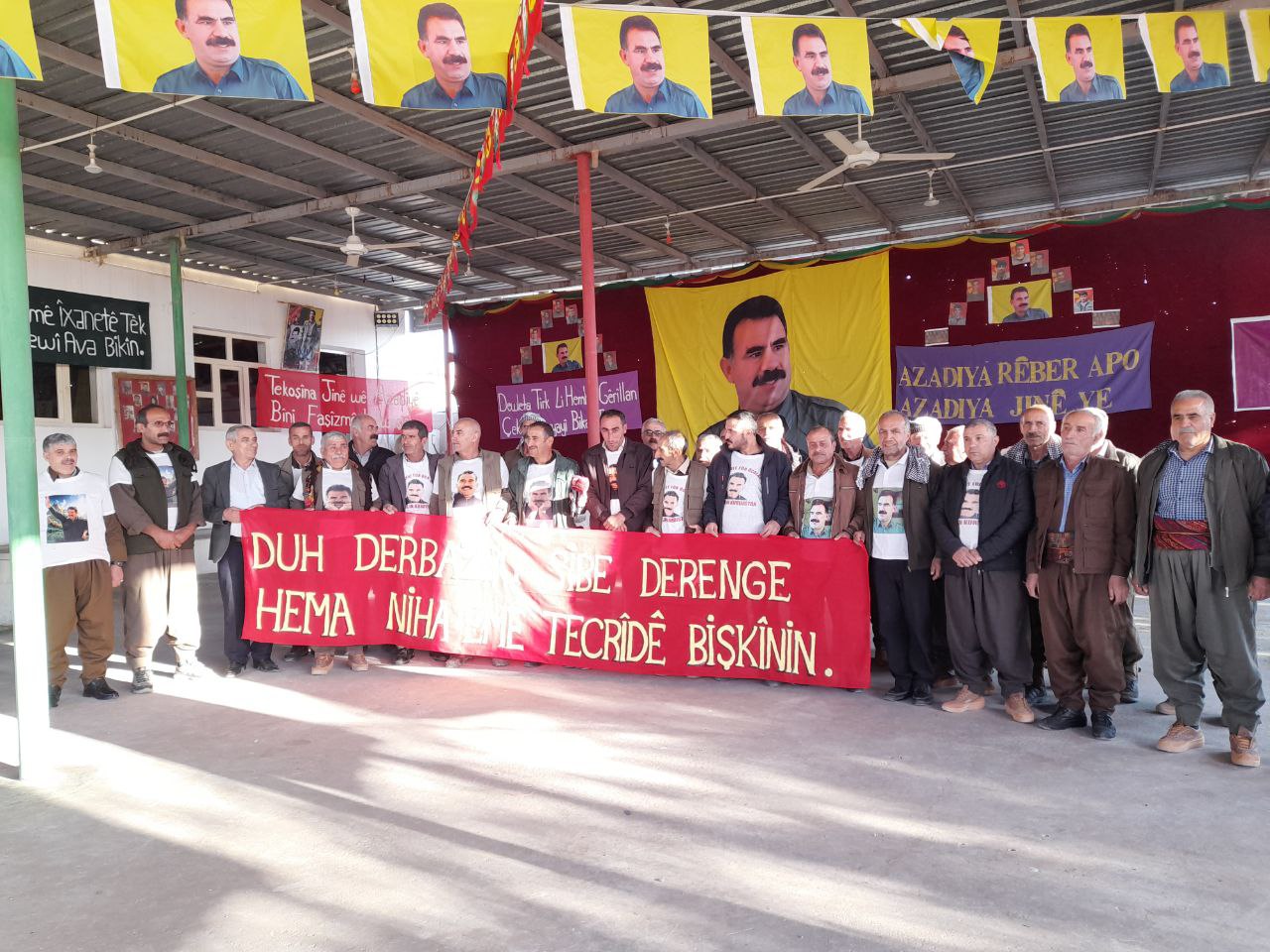MEXMÛR – Bugün saat 14.00’te Şehit Aileleri Kurumu’nda kamp halkı Önder Apo’ya yönelik ağırlaştırılmış tecride karşı bir araya geldi. Başta açıklama yapan halk “Kürt halkının Önder Apo için gerçekleştirilecek her eyleme her yerde destek vermesini istiyoruz” dedi.