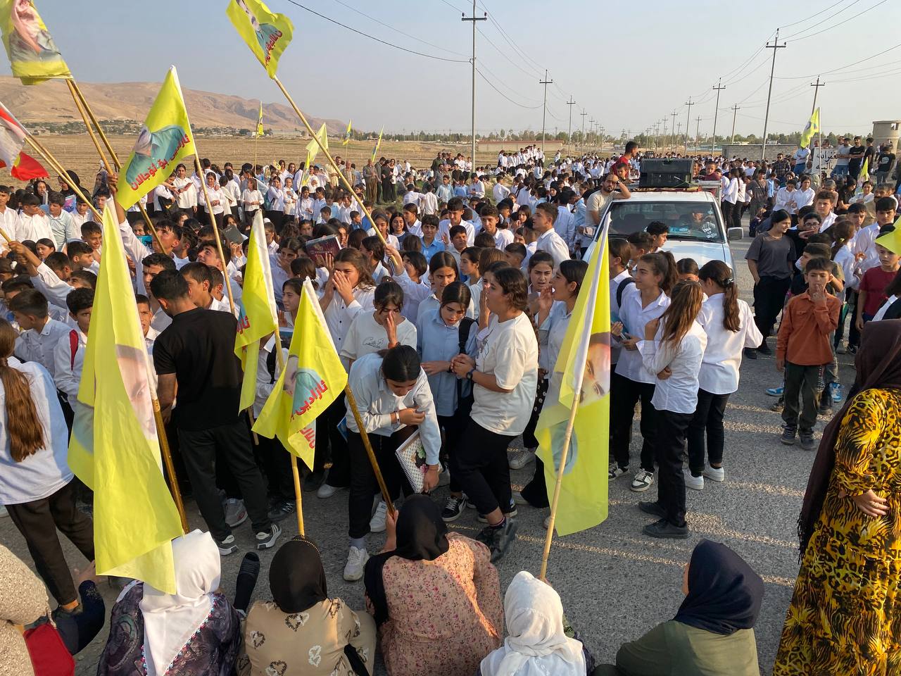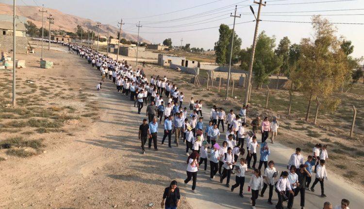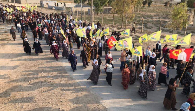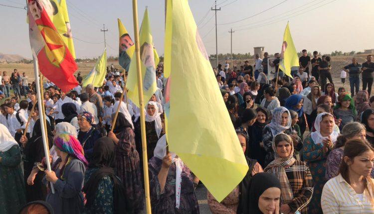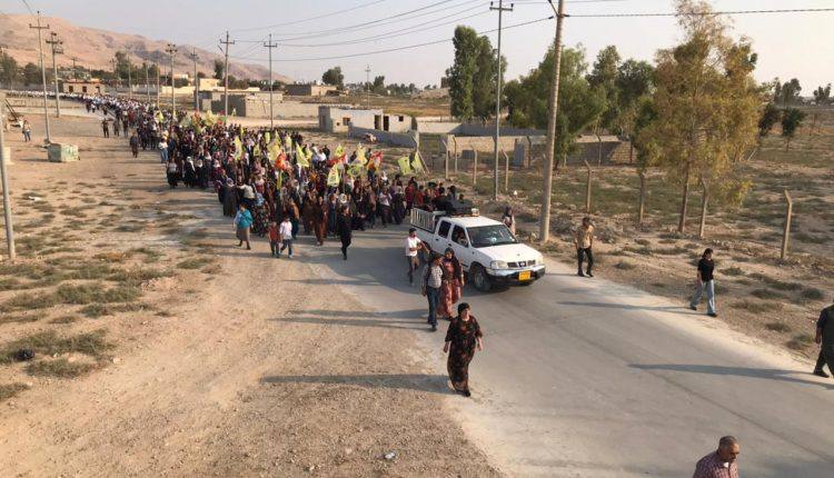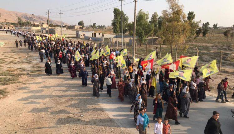 Mexmur halkının direniş yürüyüşü Şehit Aileleri Meclisinin önünde kalabalığın toplanmasıyla başladı. Yürüyüşte Kürtçe ‘Yaşasın Önder Apo’ ve ‘Kahrolsun İhanet’ sloganları atıldı. Kalabalık, Irak güçlerinin kontrol noktasının olduğu yere kadar devam etti ve kitle burada yapılan anlaşmaya orada tepkilerini gösterdi. Iraklı bir heyet ile Mexmur halk yönetimi arasında bir toplantı yapılması bekleniyor.