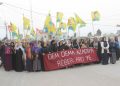Tevgera Jinên Ciwan, Tevgera Ciwanen Şoreşger ve öğrencilerin yoğun katılım gösterdiği yürüyüşte “Önderliksiz yaşam olmaz”, “Bijî Serok APO” ve “Bijî Berxwedana Îmraliyê” sloganları katıldı. BM önüne kadar yürüyen halk burada bir dakikalık saygı duruşu geerçekleştirdikten sonra öğretmen Hüseyin Kara, kamp adına açıklamayı okudu.