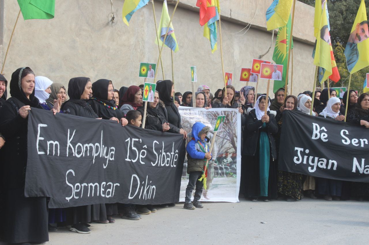 MEXMÛR – Şehit Rüstem Cudi Mülteci Kampı’nda bugün 15 Şubat’ı kınamak için yürüyüş düzenlendi.