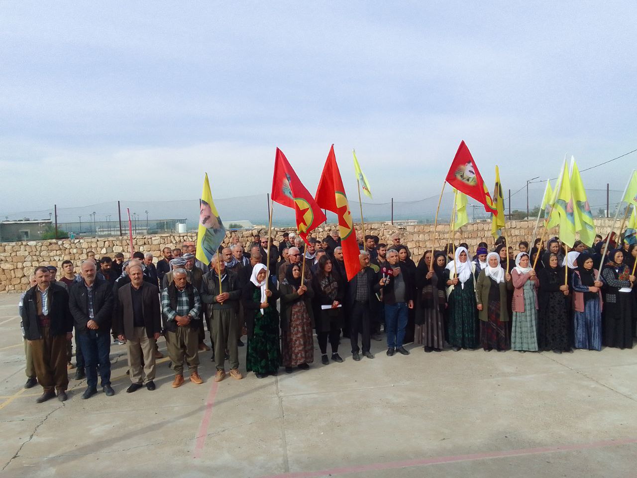 Mexmur Halk Meclisi Eşbaşkanı Yusuf Kara’nın konuşmasının ardından ‘Bijî Serok Apo’ ‘Bê Serok jiyan nabe’ sloganları eşliğinde açlık grevi eyleminin startı verildi.