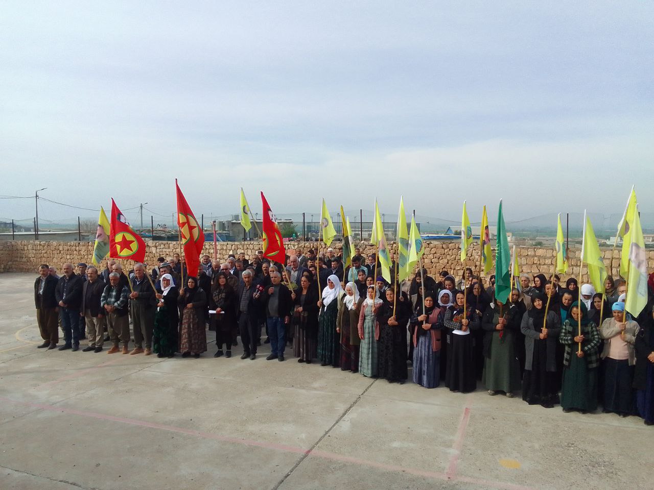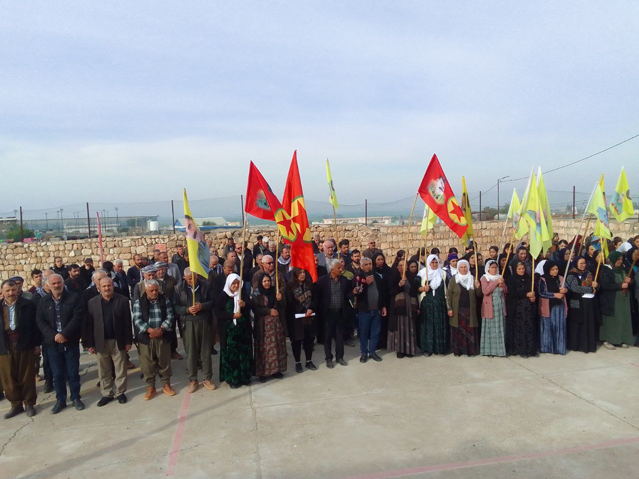 Konuşmasına Uluslararası Komployu kınayarak başlayan Yusuf Kara devamında şunları söyledi: “15 Şubat Kürtler için kara ve bahtsız bir gündür. Faşist diktatörler ve kan emici düşmanlarımız Ortadoğu üzerinde kendi çıkarlarına göre at koşturmak için bazı insanlık dışı projelere imza attı. Bu projelerini Ortadoğu ve dünyada hayata geçirmek için 15 Şubat 1999’da Önder Apo’ya uluslararası bir komplo uygulayarak onu Türk devletine teslim edip İmralı kayalıklarına hapsettiler. Önder Apo şahsında Kürt halkına uygulanan bu alçakça komployu şiddetle kınıyoruz. Yine Uluslararası Komploya karşı ‘Güneşimizi Karatamazsınız’ eylemleri ile Önder Apo’nun etrafında ateşten halka ören şehitlerimizi saygıyla minnetle anıyor mücadeleleri önünde saygıyla eğiliyorum. Uluslararası güçler şunu çok iyi bilmeli ki onlar hiçbir zaman amaçlarına ulaşamayacaklar, amacına ulaşacak olan Önder Apo’nun felsefesi ve paradigmasıdır.”
